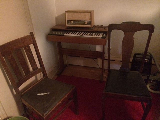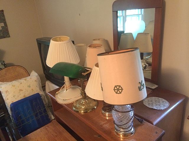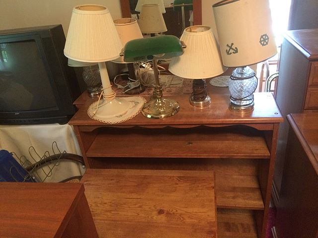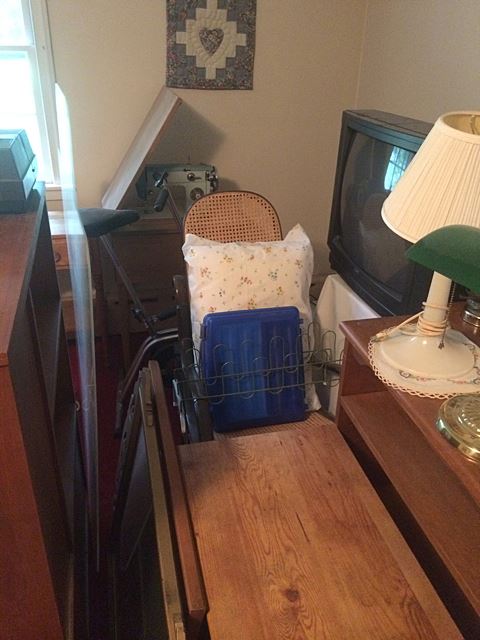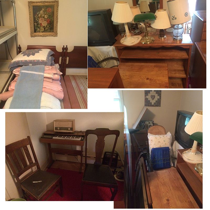 Estate discovery lot includes 2 matching twin beds, artwork, vintage chairs, radio and small organ, lamps, bureaus, cained rocker,vintage metal desk ready to be repurposed, etc. Local buyers take note: These items are at Litchfield, CT Estate and can be picked up at the estate. Take what you want, leave what you don't.