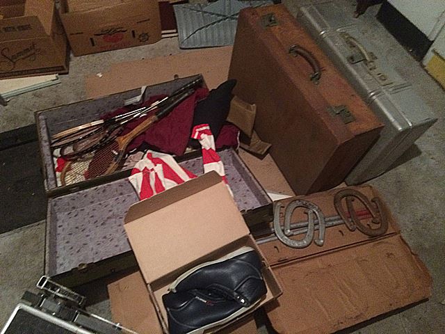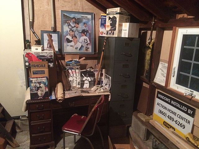 Estate Discovery Lot, everything being sold as found at Litchfield Estate. Lot includes Yankees memorabilia, sports items, vintage trunks and suitcases, vintage chest, desk, Sony fiber optic advertising sign, and many more items to be discovered! Local buyers take note: These items are at Litchfield, CT Estate and can be picked up at the estate.