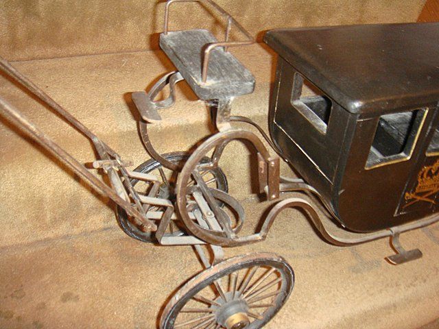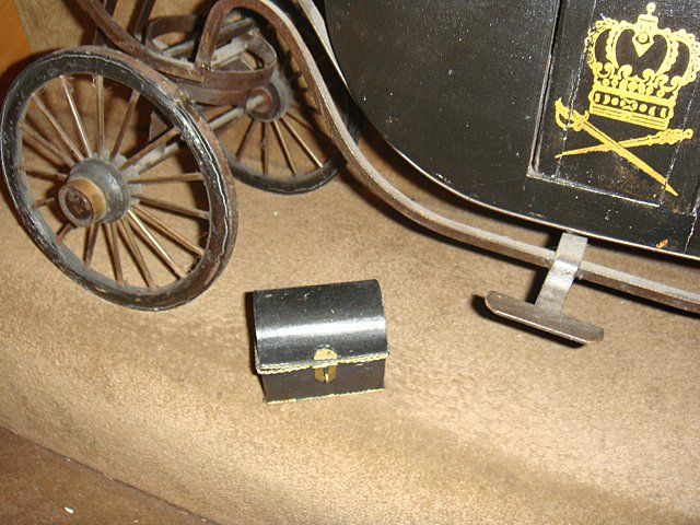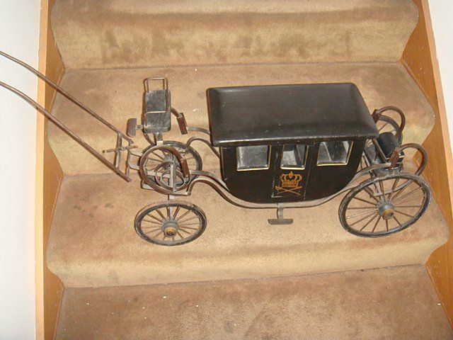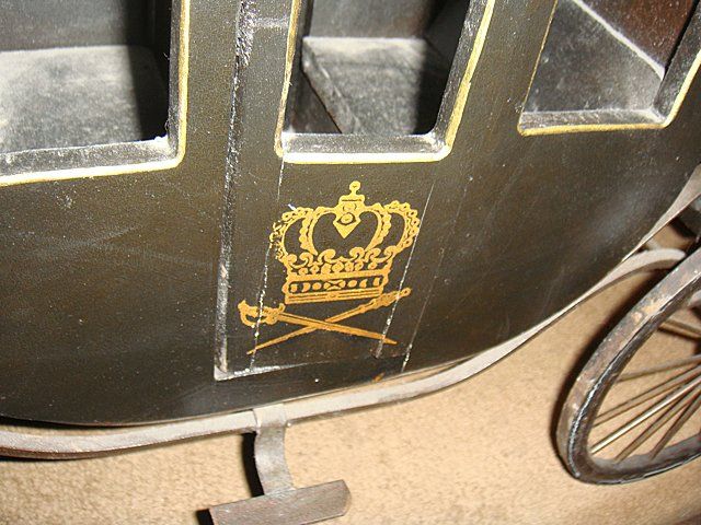 Very nice estate English Carriage, mesures 28" long x 8" wide. Working carriage with mini stagecoach trunk.