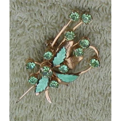 <tr><td>Title:Estate Find Green Rhinestone Leaf Brooch Pin</td></tr>