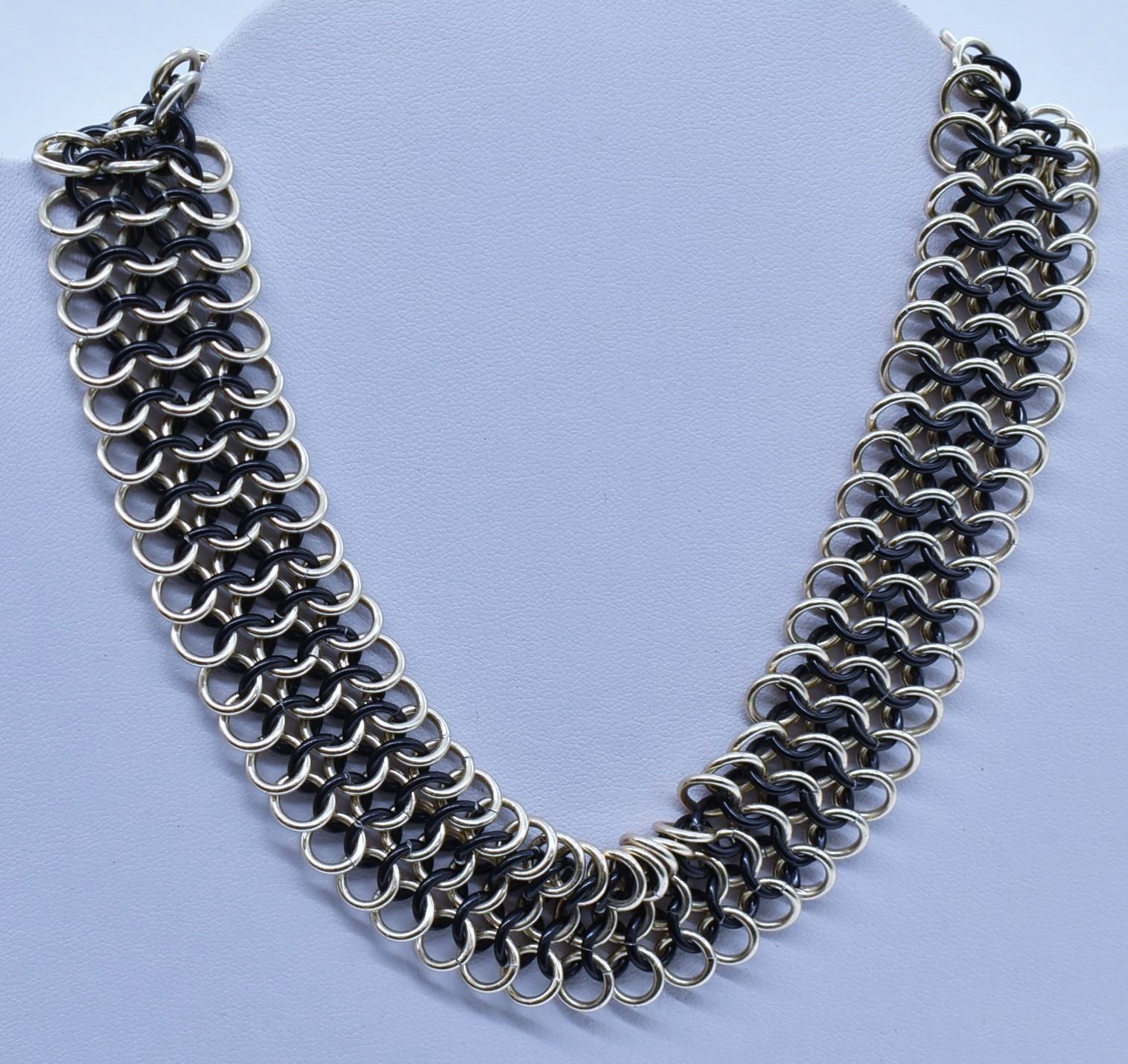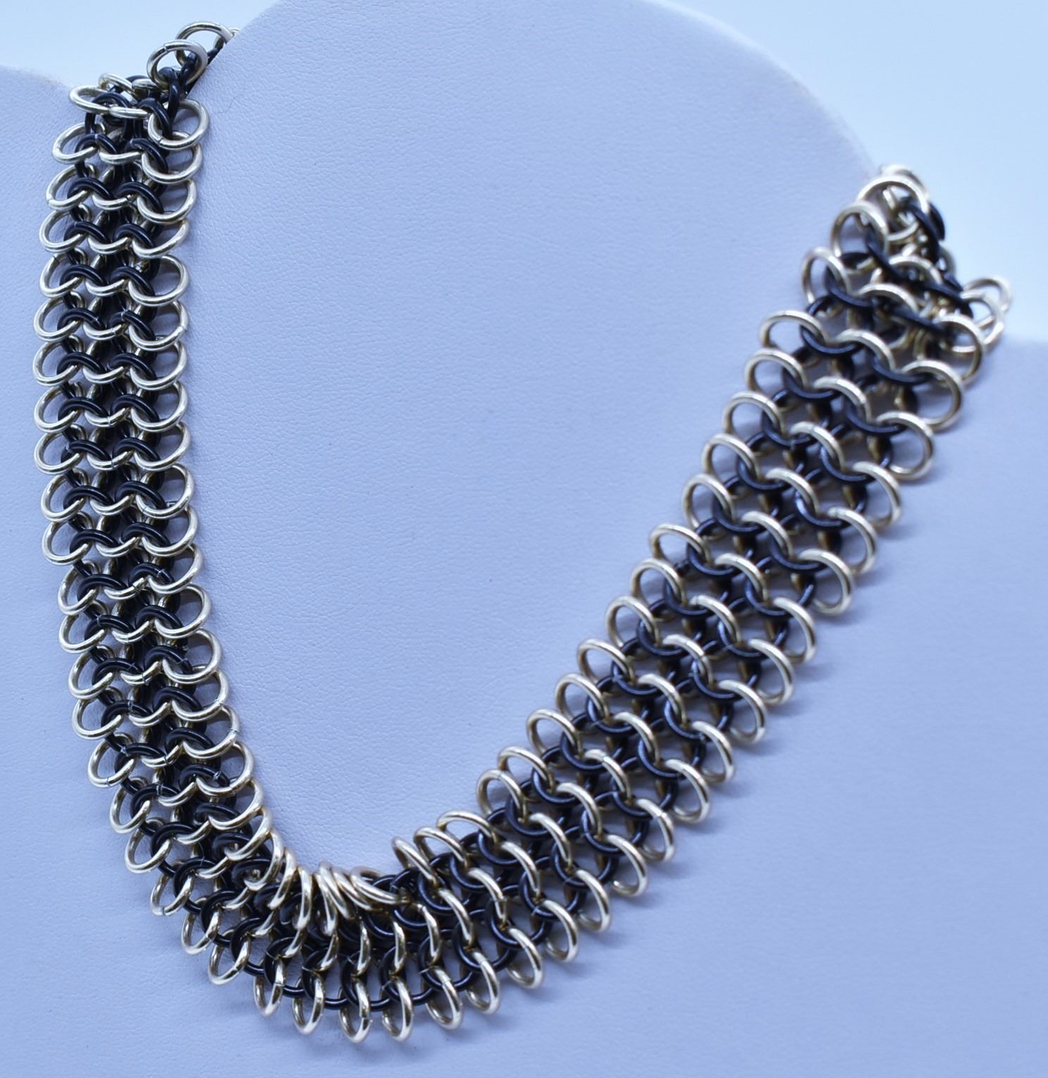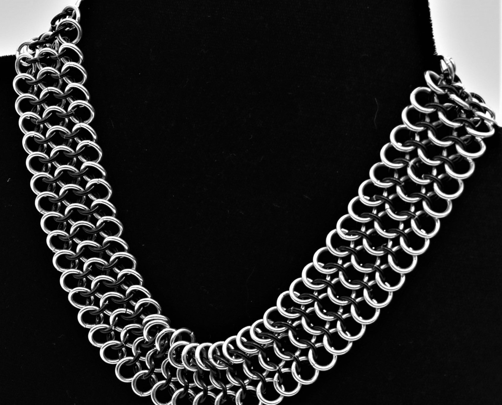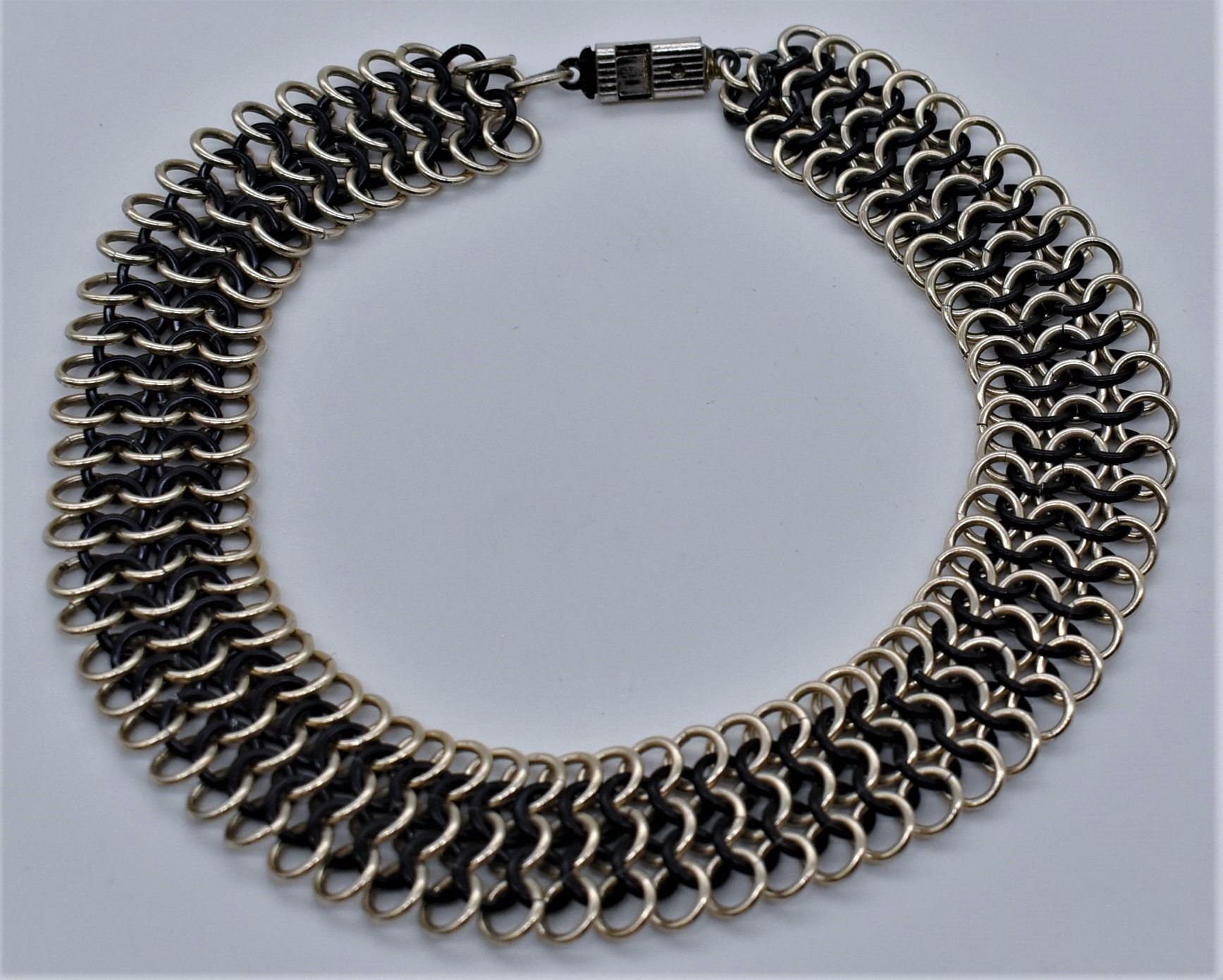 Estate German Chain Mail Silver Tone Metal Choker, measures 15''L end to end, clasp is stamped ''Made in Germany''