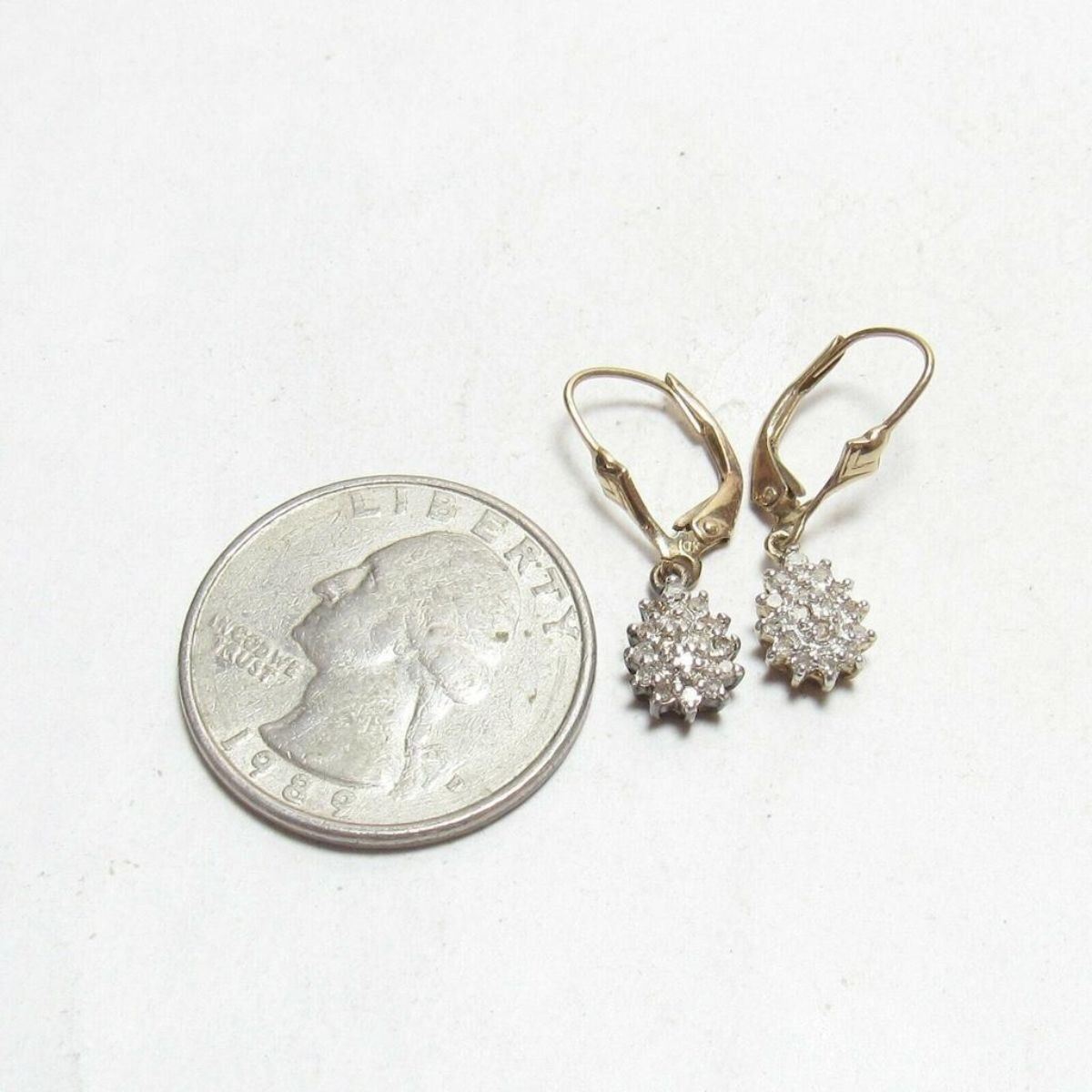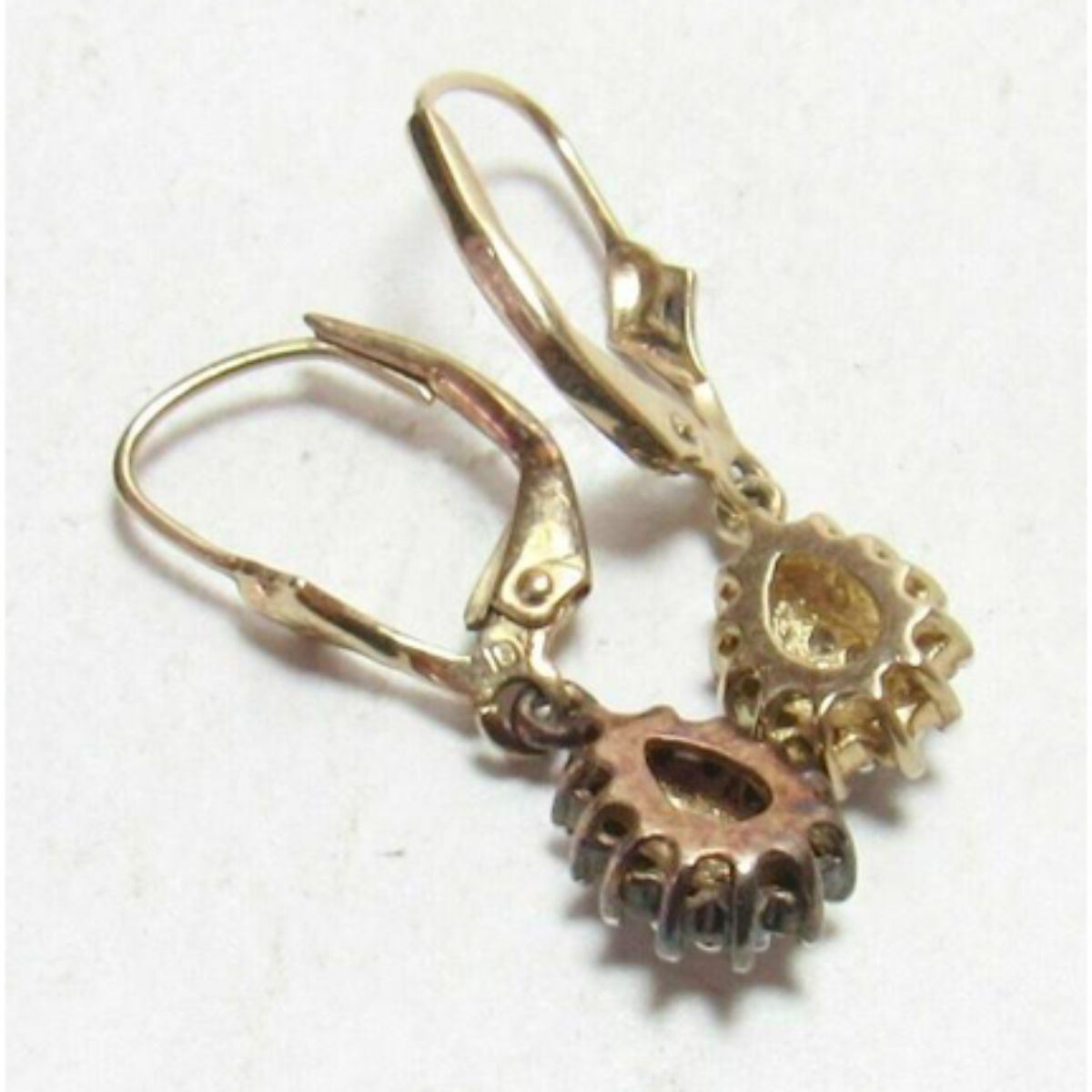 Estate gold & diamond dangle earrings with 32 single cut round diamonds, .30cts, I1clarity ( with some I2's with various internal flaws ) & I in color. 10K yellow gold ( marked ) leverback, drop dangle style. 1.8 grams.Â