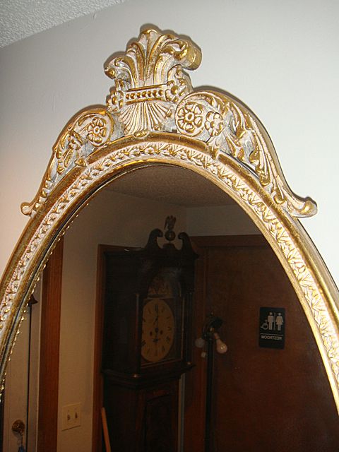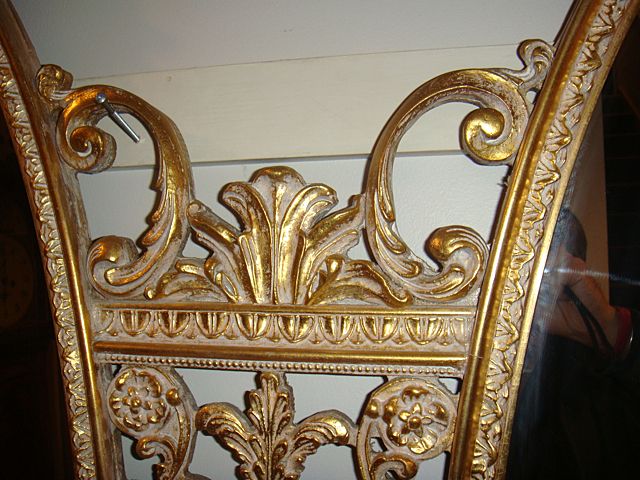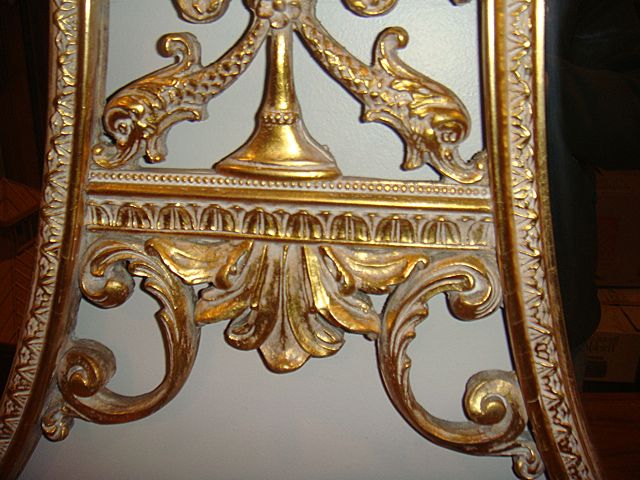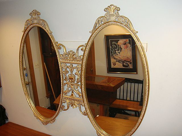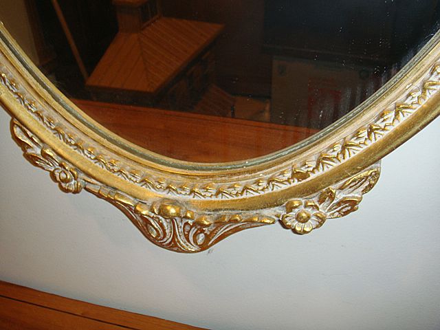 Estate Gold Gilt Very Ornate 2 Oval Mirror. Very nice mirrors with exceptionally ornate gold gilt design. Has dolphins that would match Pier Table, Lot 263 and would make a beautiful set and focal point in any home!