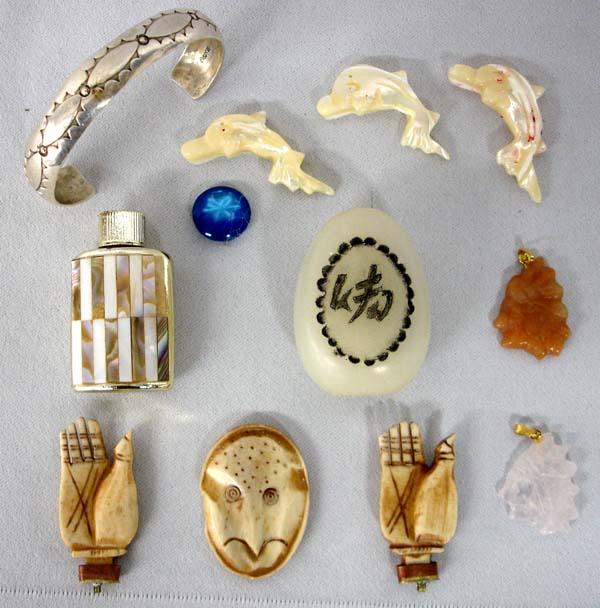 Jewelry Collection. Perfume bottle, bracelet, pendants, etc. Perfume bottle measures approx. 1 3/4'' tall. Buyers Pay Actual Shipping and Handling Charges(see terms and conditions for more information).