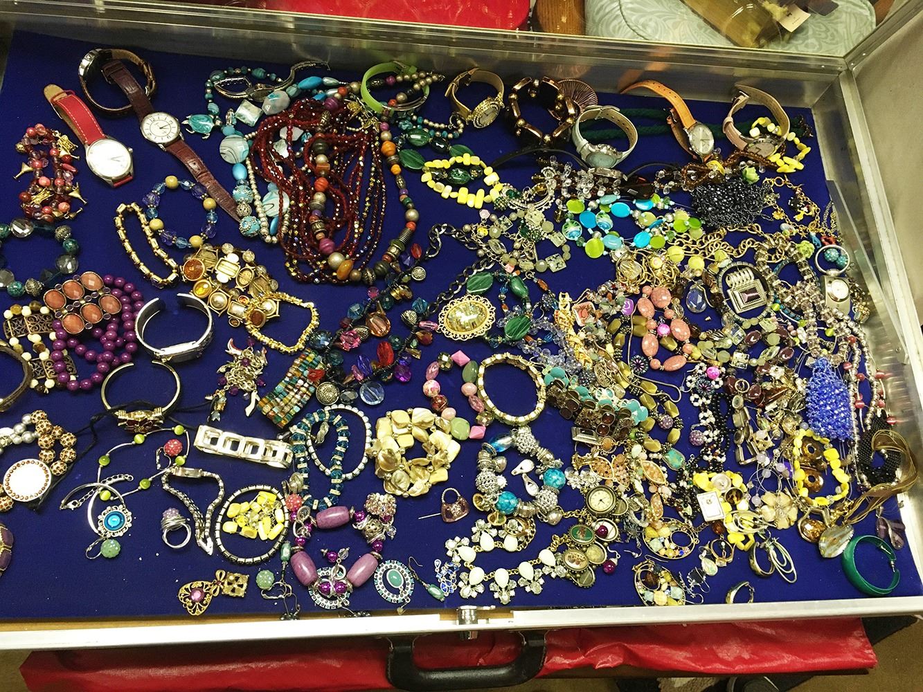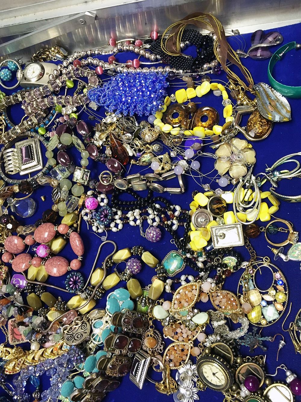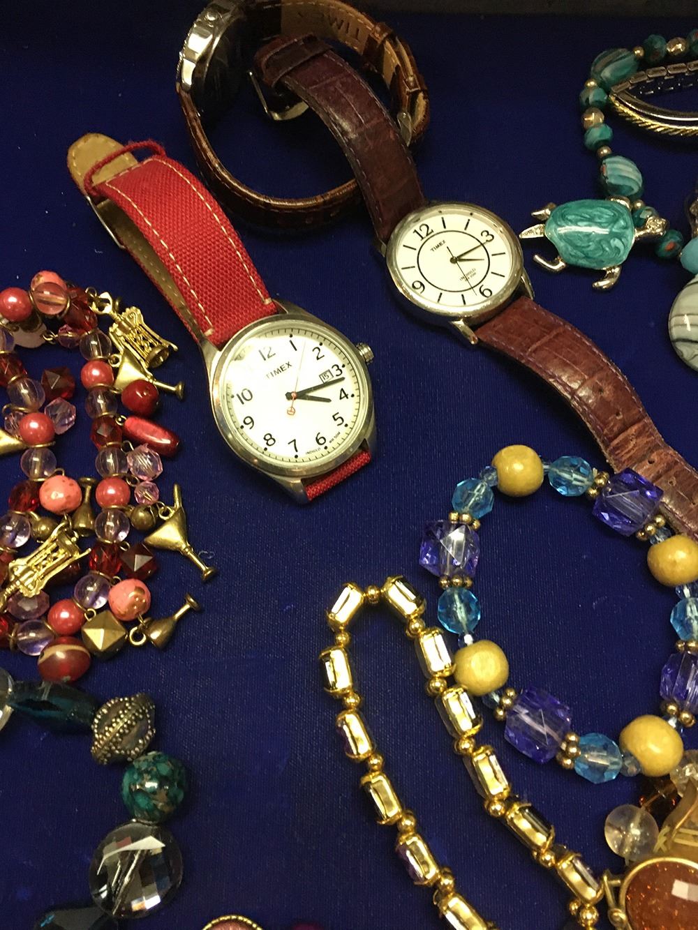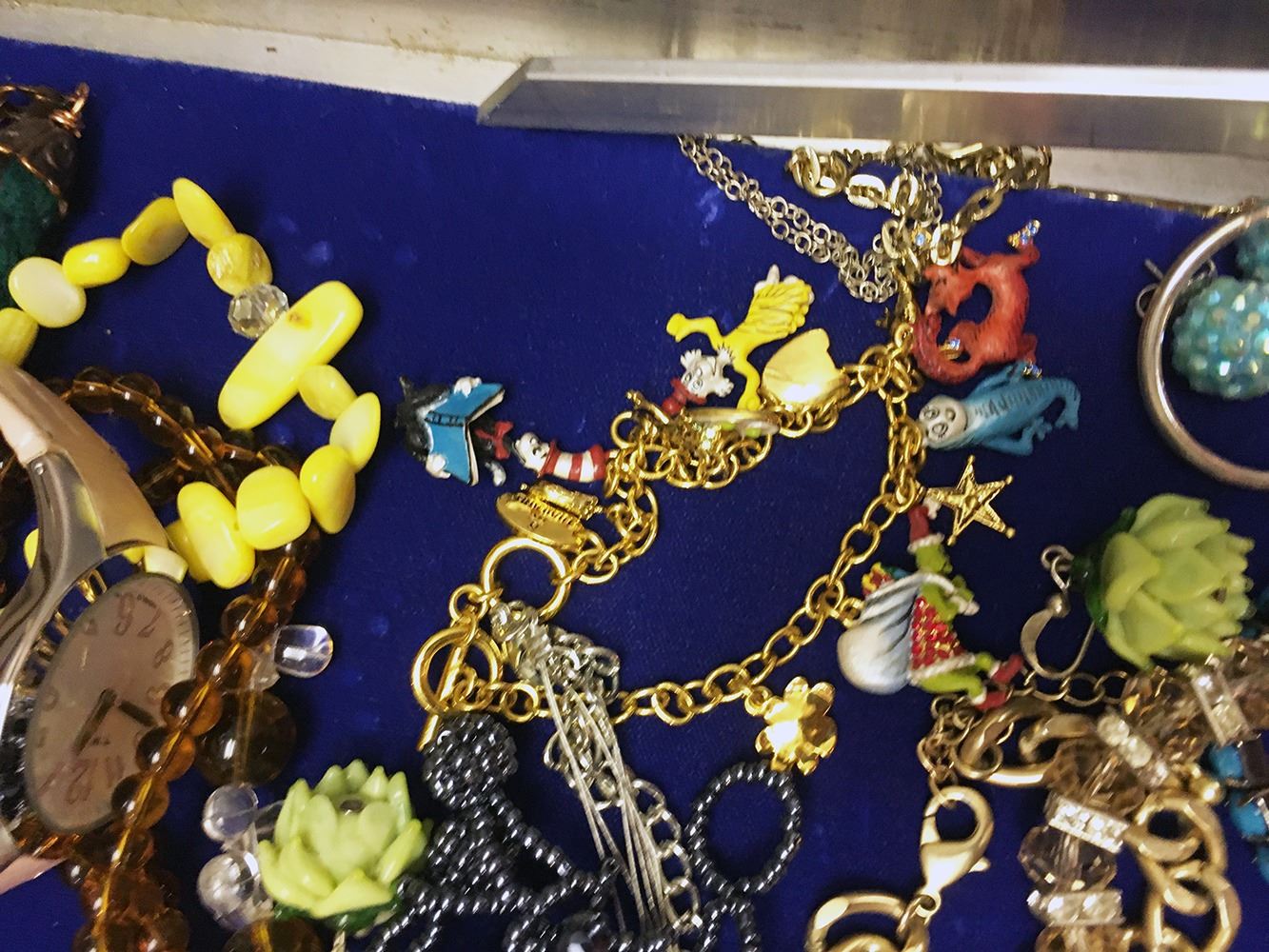 Estate jewelry lot includes bracelets, watches, earrings, necklaces, beads, Dr. Suess charm bracelet, etc. All being sold as one lot!