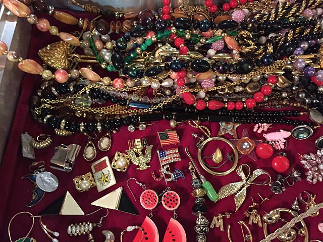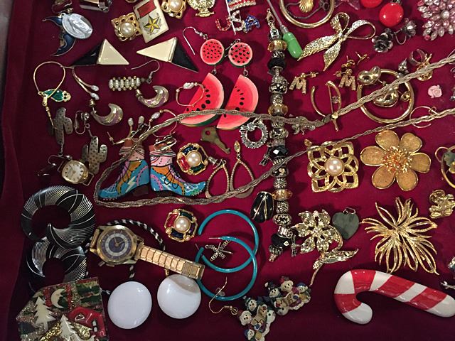 Nice lot of estate costume jewelry, earrings, necklaces, pins, Christmas pins and earrings, wild little assortment of earrings, etc. all being sold for 1 monies!