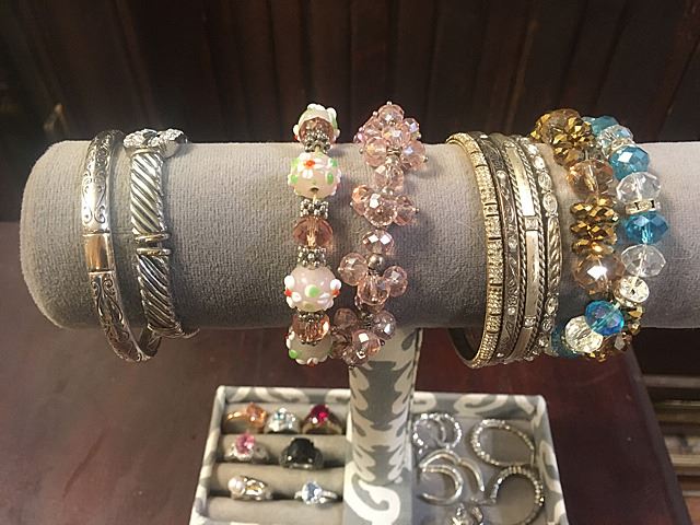Estate Jewelry Lot includes bracelets, bangle bracelets, rings and earrings, some are sterling silver.