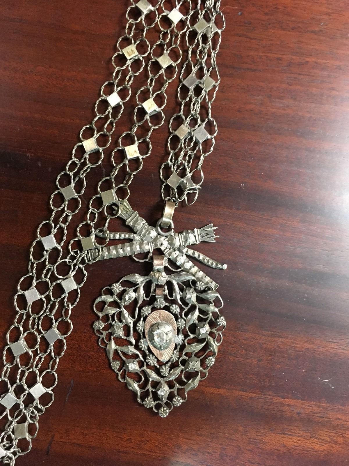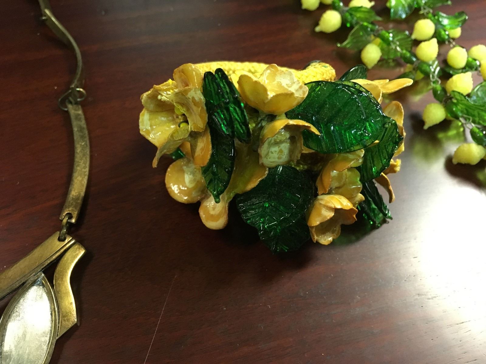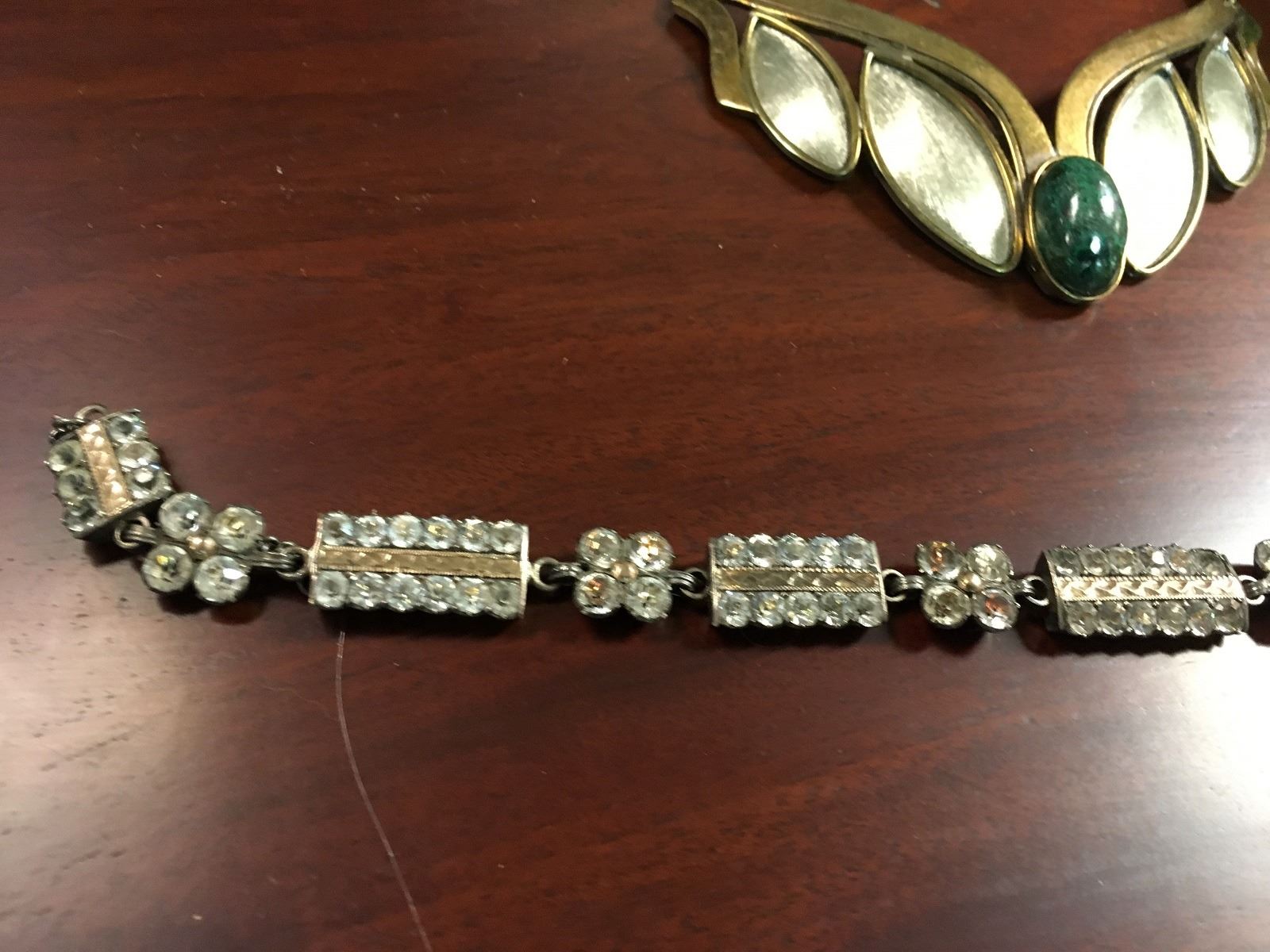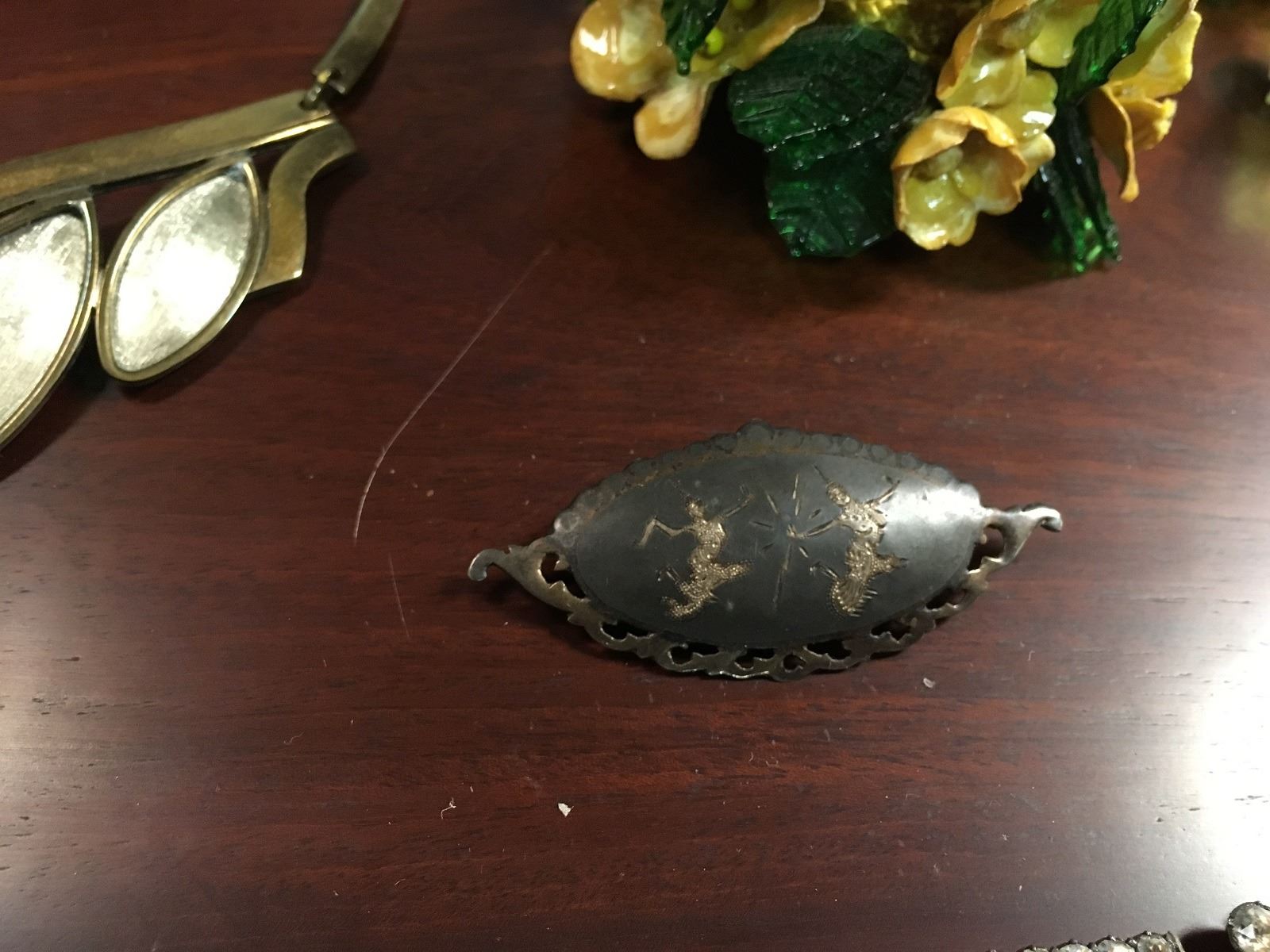 Estate jewelry lot includes paste, glass and modernist necklace including sian nielo pin, heart with rose cut diamonds.
