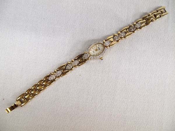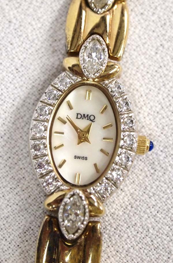 From the Posey Estate, we have an Elegant DMQ Swiss Ladies Goldtone and Rhinestone Wrist Watch, measures 7'' end to end, does run