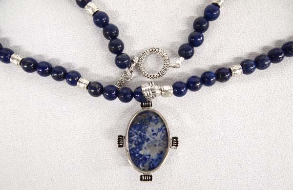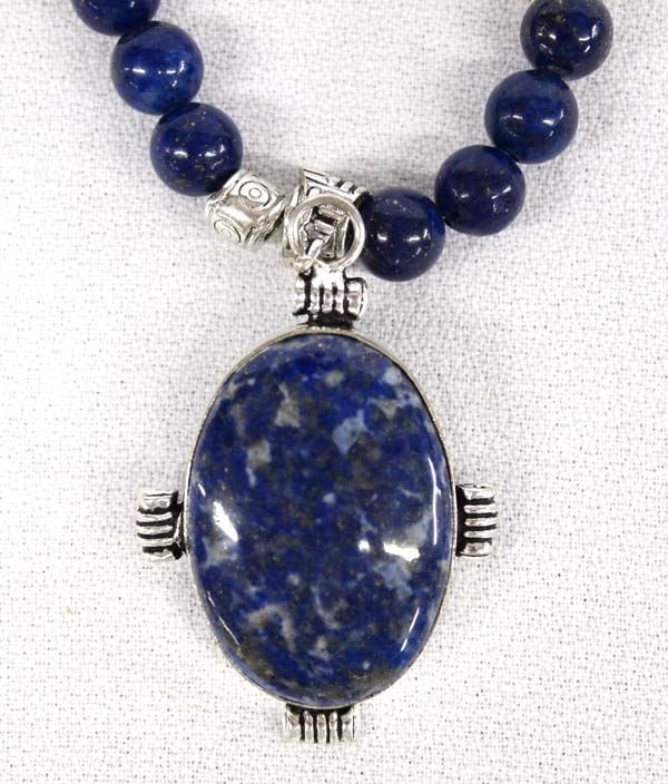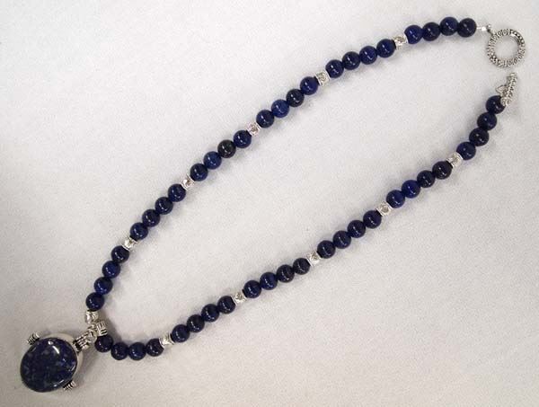 From the Nupp Estate we have a Lapis Lazuli Bead and Pendant Necklace, measures 21'' end to end, silver spacer beads