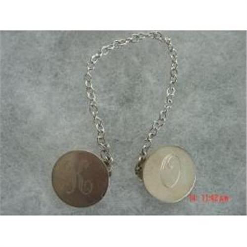 Here is a wonderful signed Leonore Doskow Handmade Sterling ladies sweater clip. There is a fine piece of sterling chain holding these 2 items together. Excellent condition. Initials are K and O on the top of both of these