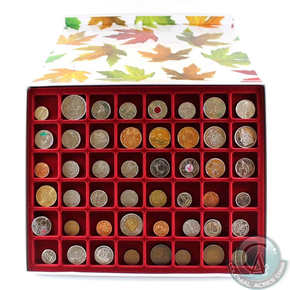 Estate Lot 1916-2014 Mixed Canadian Coins. Most coins are in Uncirculated condition and come in a Historic coins of Canada Display case. 48pcs.