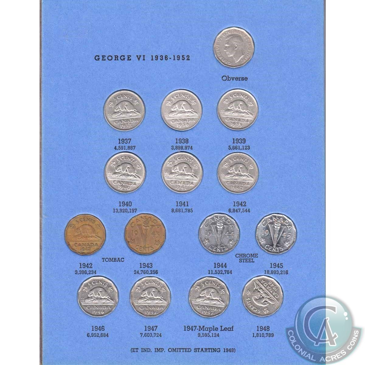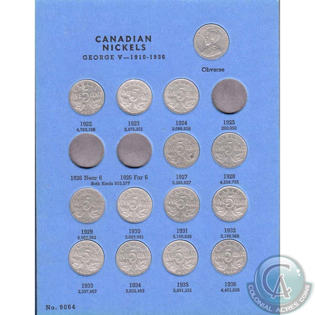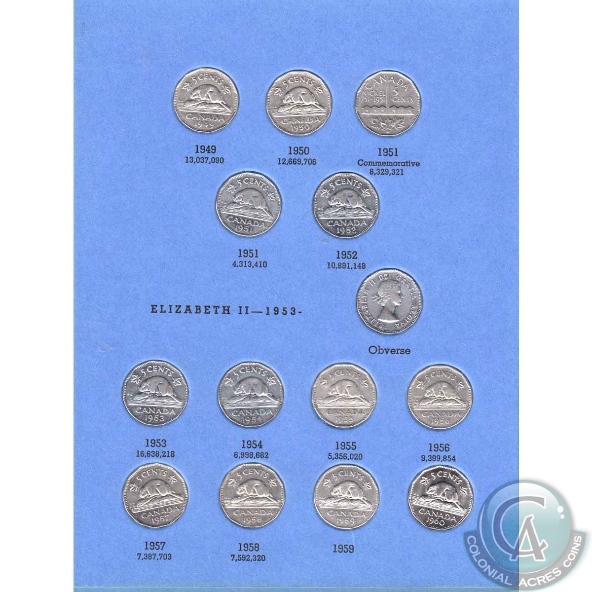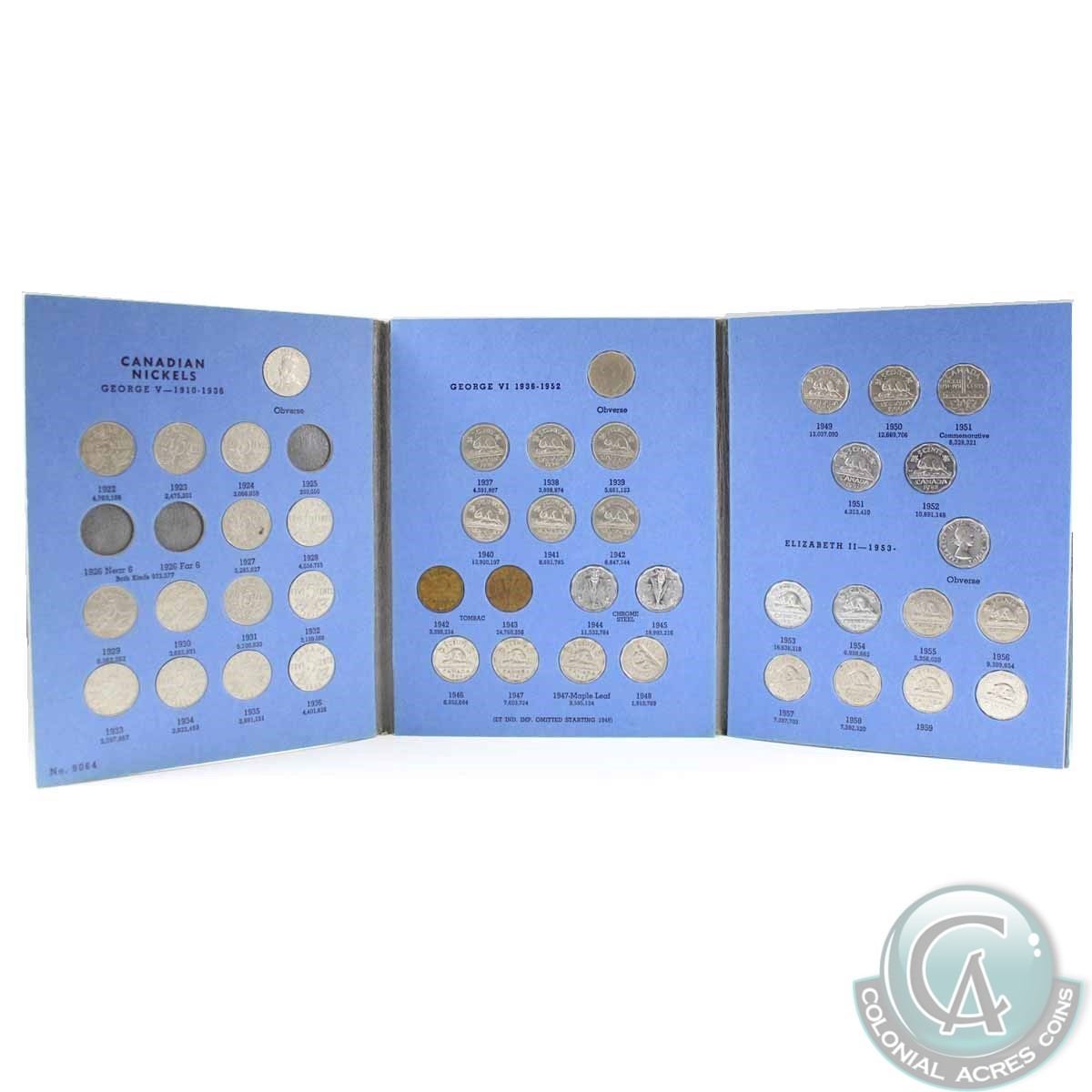 Estate Lot 1922-1960 Canada 5-cent Coin Collection in Vintage Blue Whitman Folder. You will receive 43 coins issued between 1922 and 1960. 43pcs.