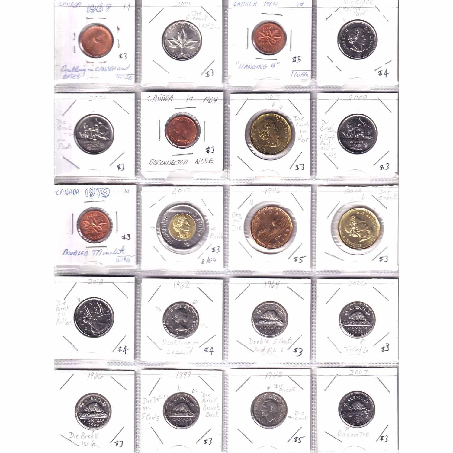 Estate Lot 1942-2018 Canada Mint Error Coin Collection. You will receive a variety of coins dated between 1942 and 2018 and minor Mint Errors. 20pcs.