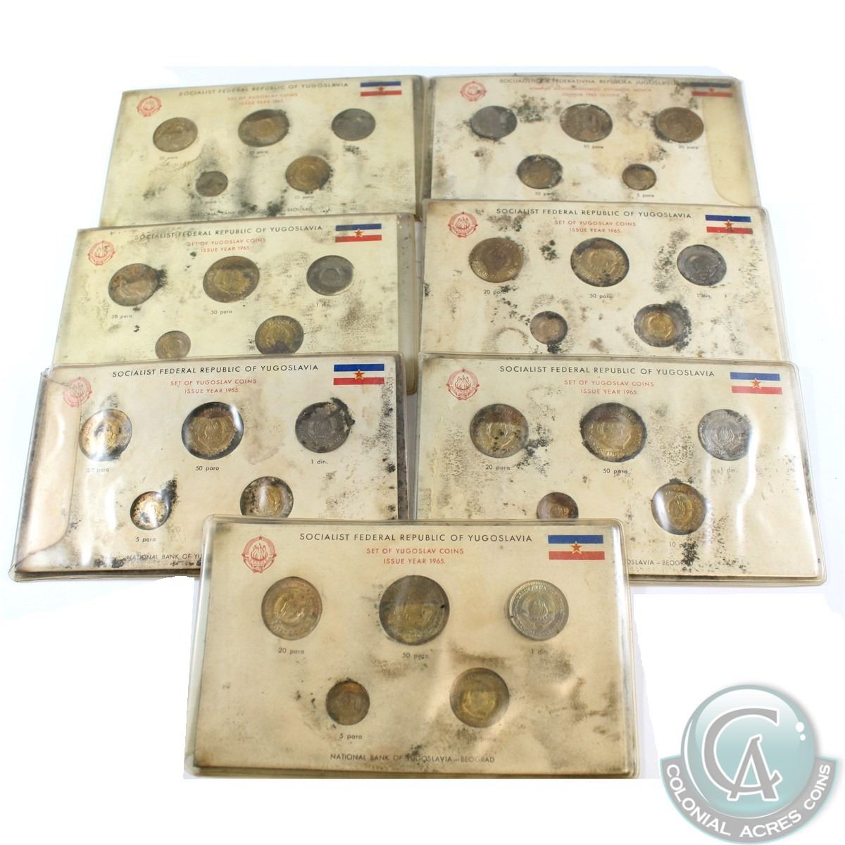 Estate Lot 1965 Republic of Yugoslavia 5-Coin Sets. You will receive a total of 7 Sets. Please note holders are damaged and coins are impaired. Sold as is No return. 7pcs