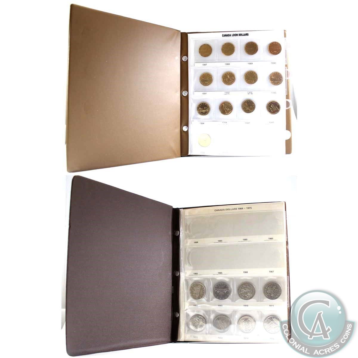 Estate Lot 1968-2009 Canada Dollar Collection in brown Uni-Safe Books. You will receive 21 Nickel Dollars, and 23 Loon Dollars issued between 1968 and 2009. 44pcs.