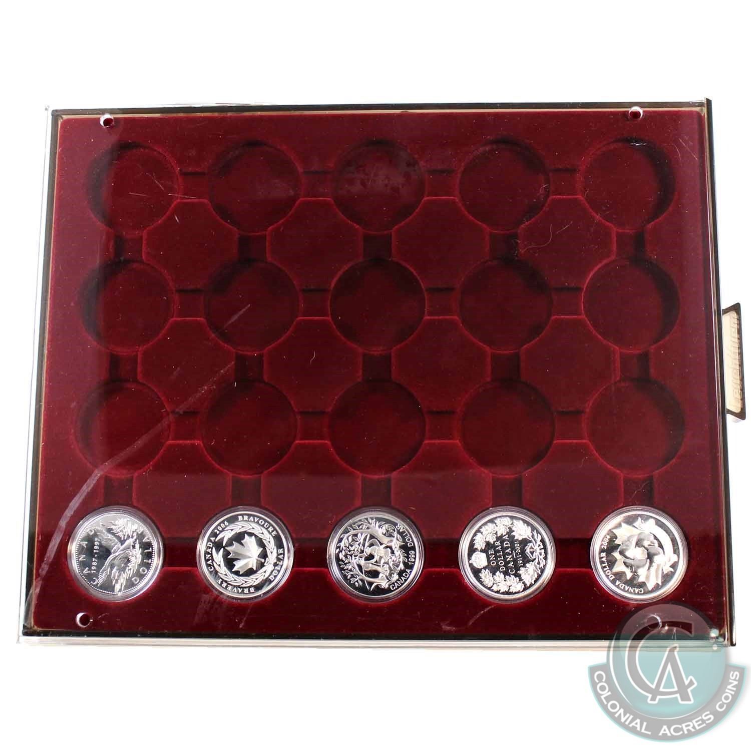 Estate Lot 1997-2006 Canada Proof Silver Dollar Collection in Display Tray. You will receive each of the Commemorative Issue Proof Dollars released from 1997 to 2006. Please note the tray is scuffed. 5pcs + Tray.