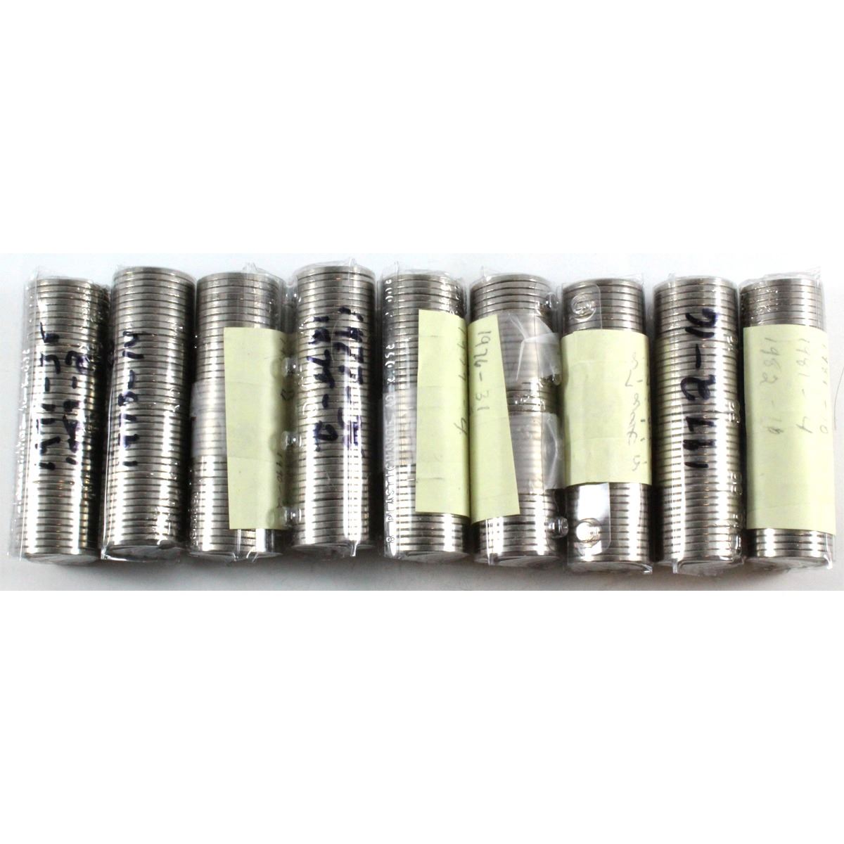 Estate Lot: 9x Canada Mixed Dated Rolls of 5-cents From 1971 to 1999. The quantity of dates for each roll is indicated on the outside wrapper. Sold as is, no returns. 9 rolls. Buyers Premium will be added on all items as per our terms of sale. We accept Paypal, Credit Card, E-Transfer Payments, Cheque or Money Orders (there is an additional 3% fee for using Paypal or Credit Card). All invoices will be emailed immediately following the auction, please contact us if you would like to pay by credit card or receive a new revised lower total for mailing in payment or sending an e-transfer (3% discount). All Items Are Sold "AS IS", no returns
