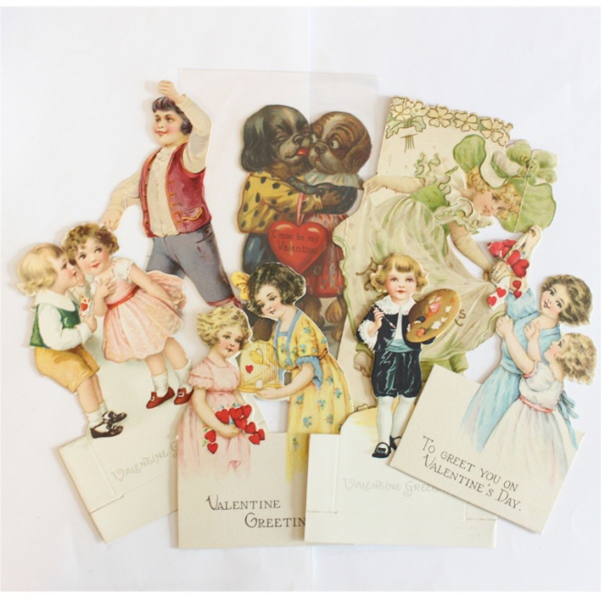 Estate Lot Antique Victorian Die-cut Greeting Cards. You will receive 7 Cards, mainly Valentines Day themed. 7pcs.