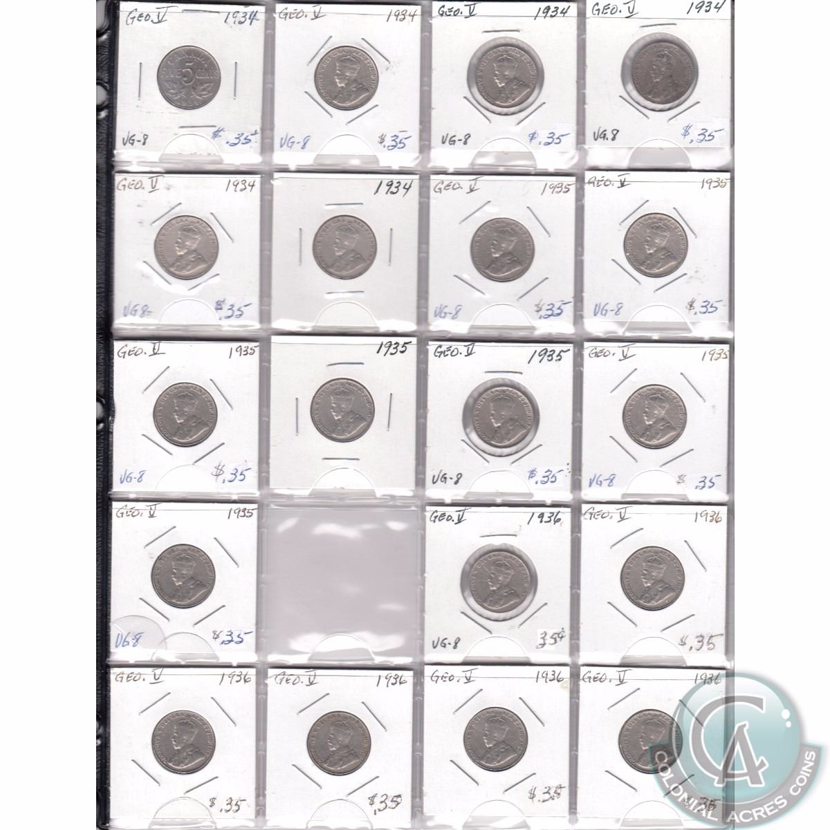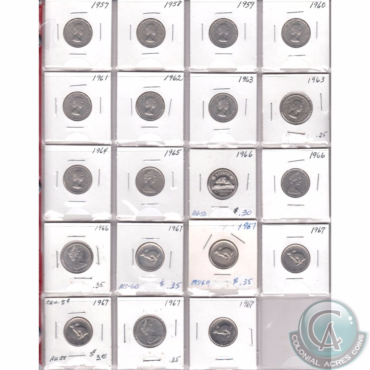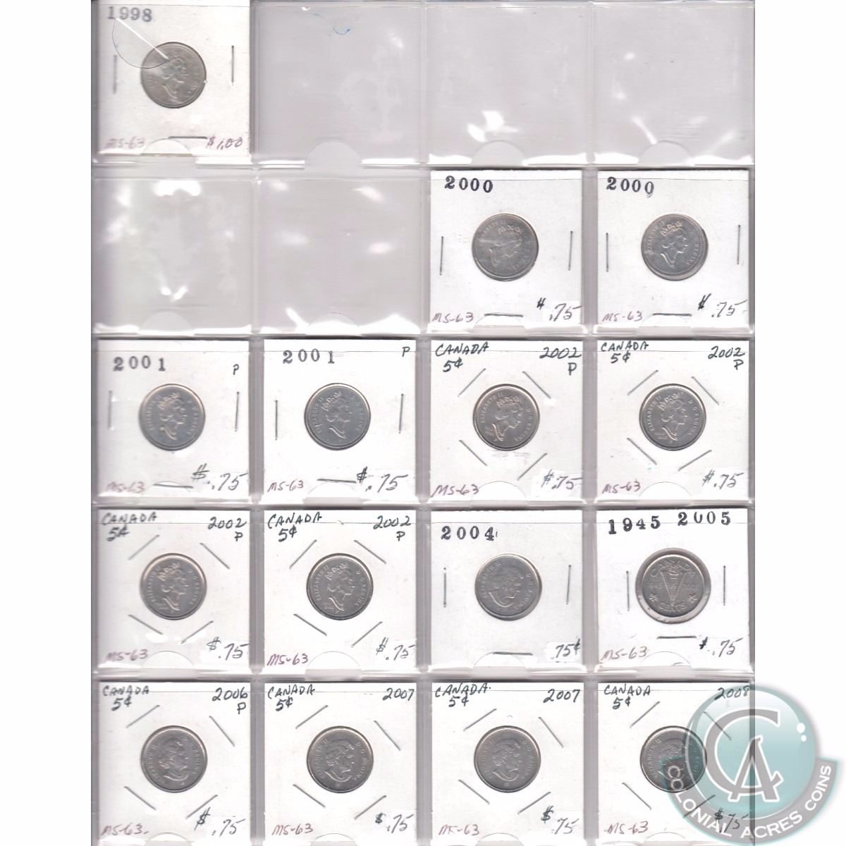 Estate Lot Binder of 220x Canada 5-cent in 2x2's and Plastic Pages. You will receive the dates 1922-2008. Many years have duplicates and some years are missing. 220pcs