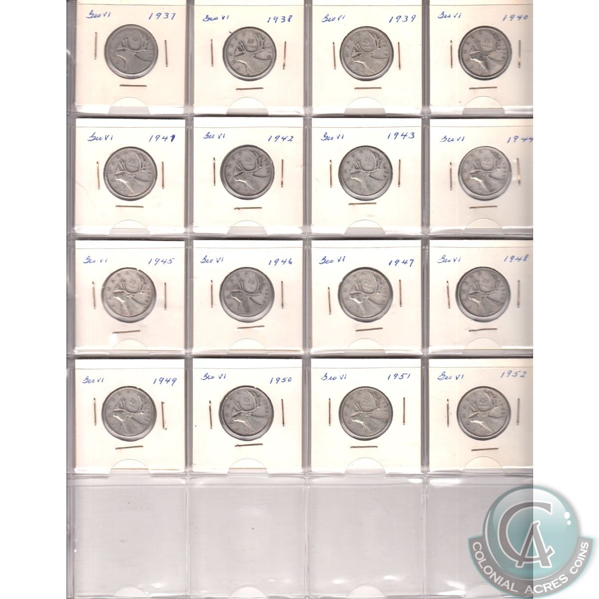 Estate Lot: Canada Silver 25-cent Coins dated 1937 to 1952. You will receive one of each date between 1937 and 1952. 16pcs.