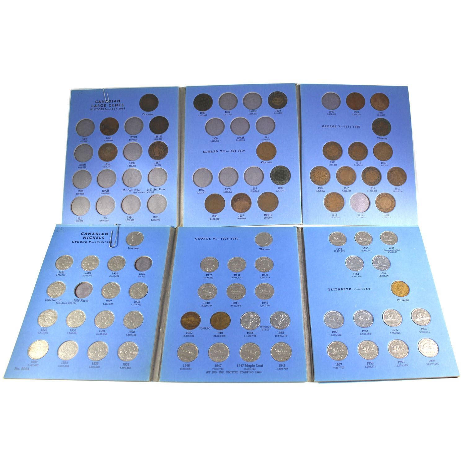 Estate Lot, Large Cent Collection and Canadian 5-cent Collection. Includes 24x Large 1-cents, many are low grades or impaired, and 5-cents 1922-1960 - Collection nearly complete, missing 1925 & 1926 Far.