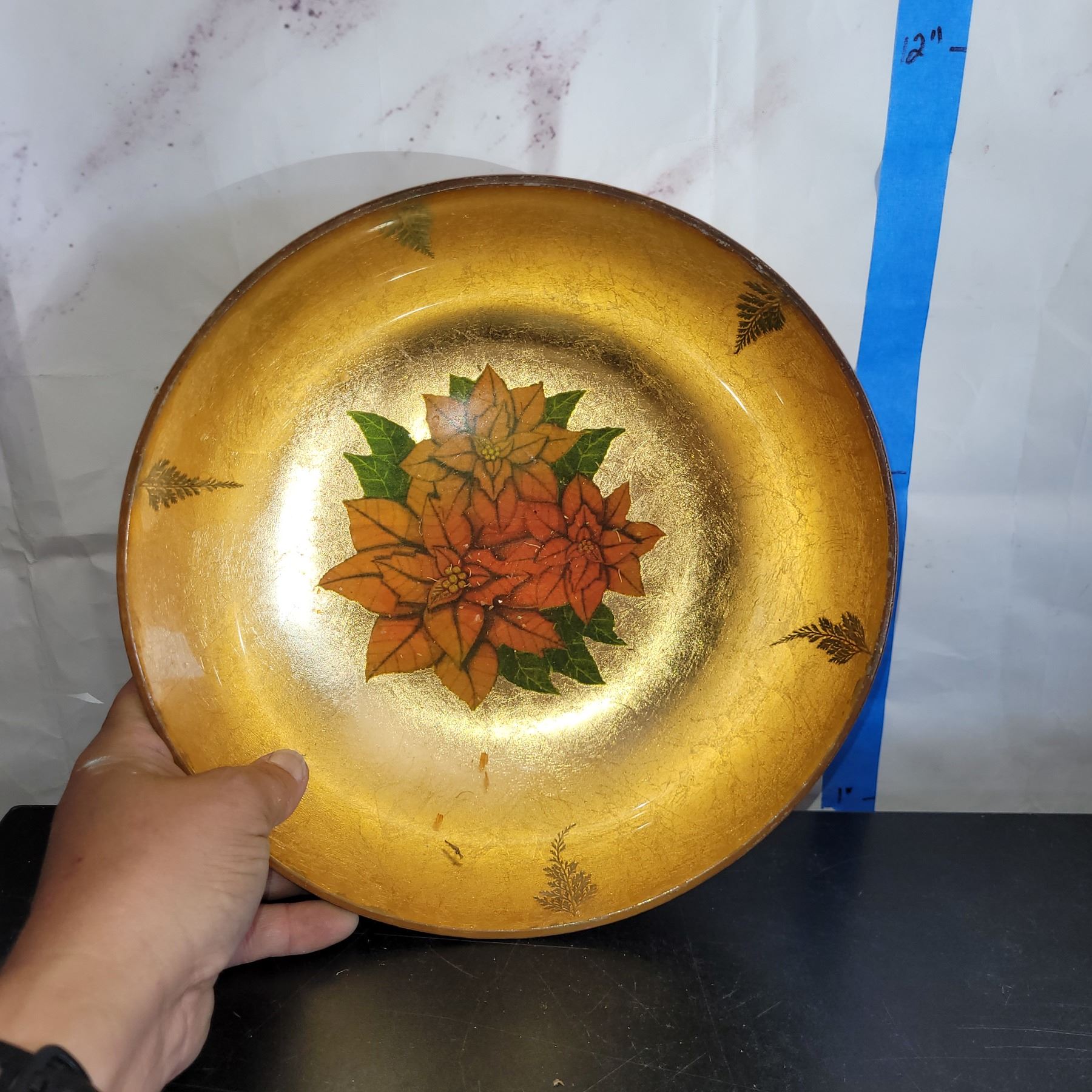 Estate Lot - Pretty Xmas Bowl, Signed Pottery Bowl, Large Coca Cola Plate + Large Lazy Susan