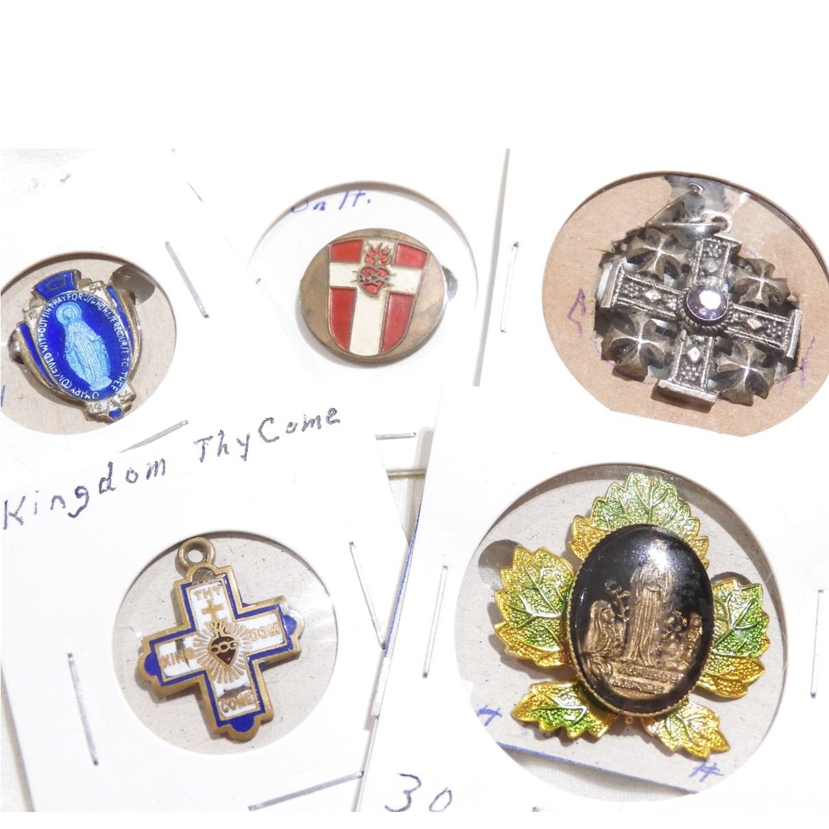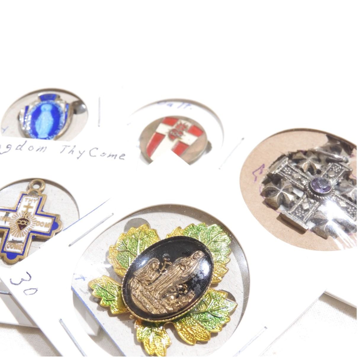 Estate Lot Vintage/Antique Mixed Metals Religious Brooch Collection. You will receive 5 different brooches in this collection. 5pcs.
