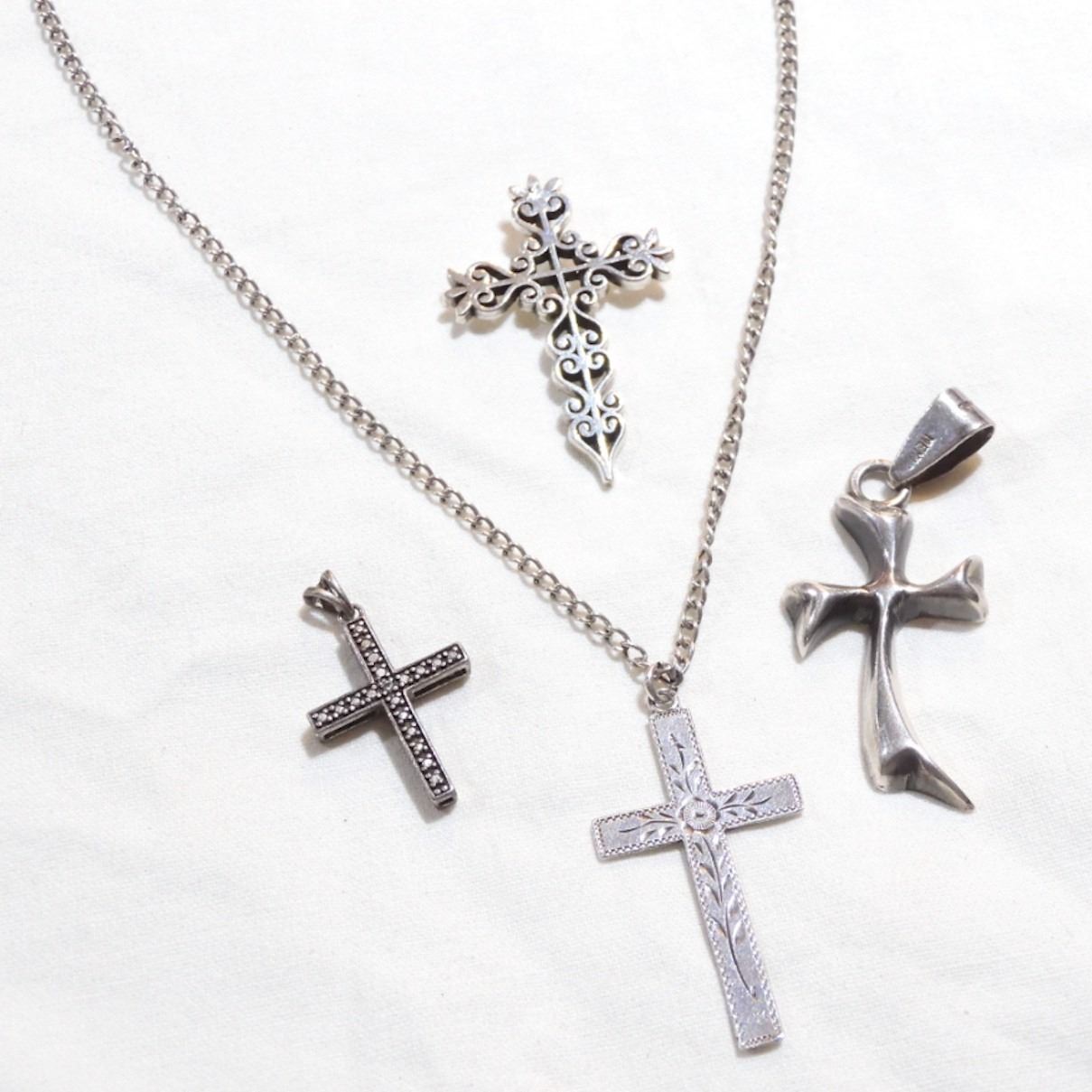 Estate Lot Vintage Sterling Silver Cross Pendants. One comes with a 18" Chain. Total weight of 22.79 grams.