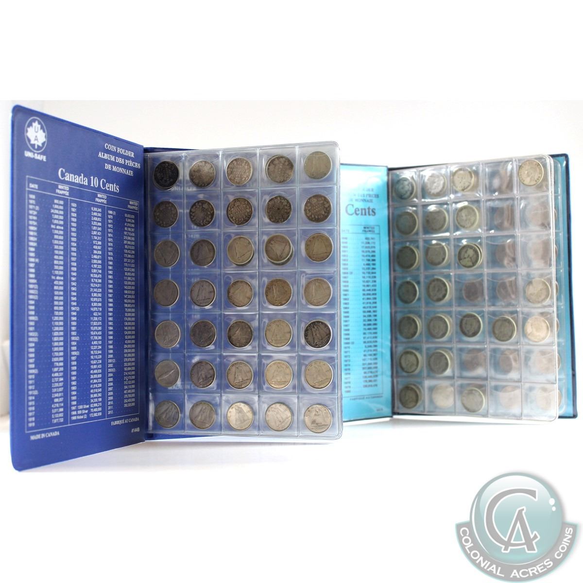 Estate Lot of 100x Canada 10-cent Dated 1899-2001 in Blue Uni-Safe Folders. There is $7.60 face value in silver Coinage. 100pcs