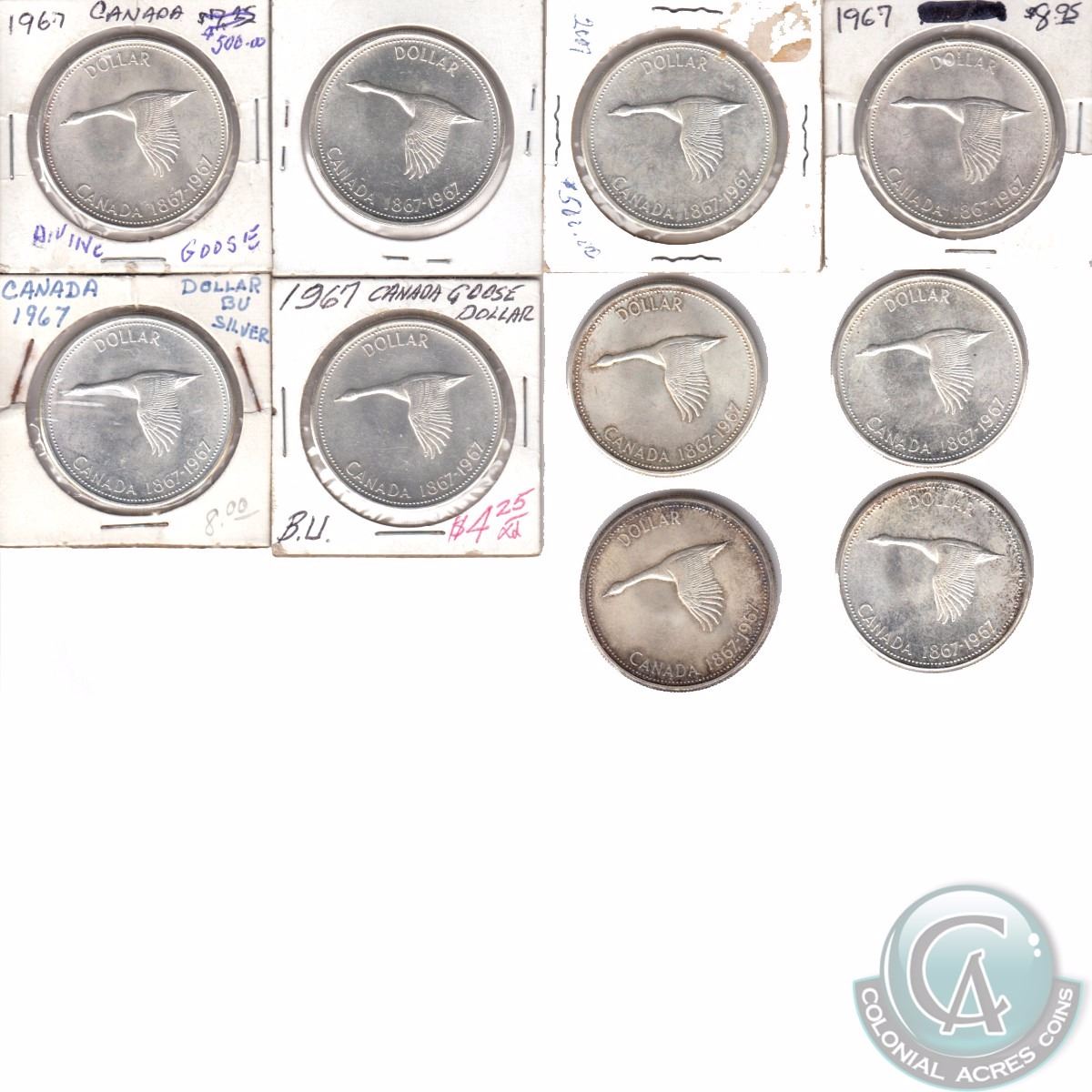 Estate Lot of 10x 1867-1967 Canada Commemorative Silver Dollars. 10pcs