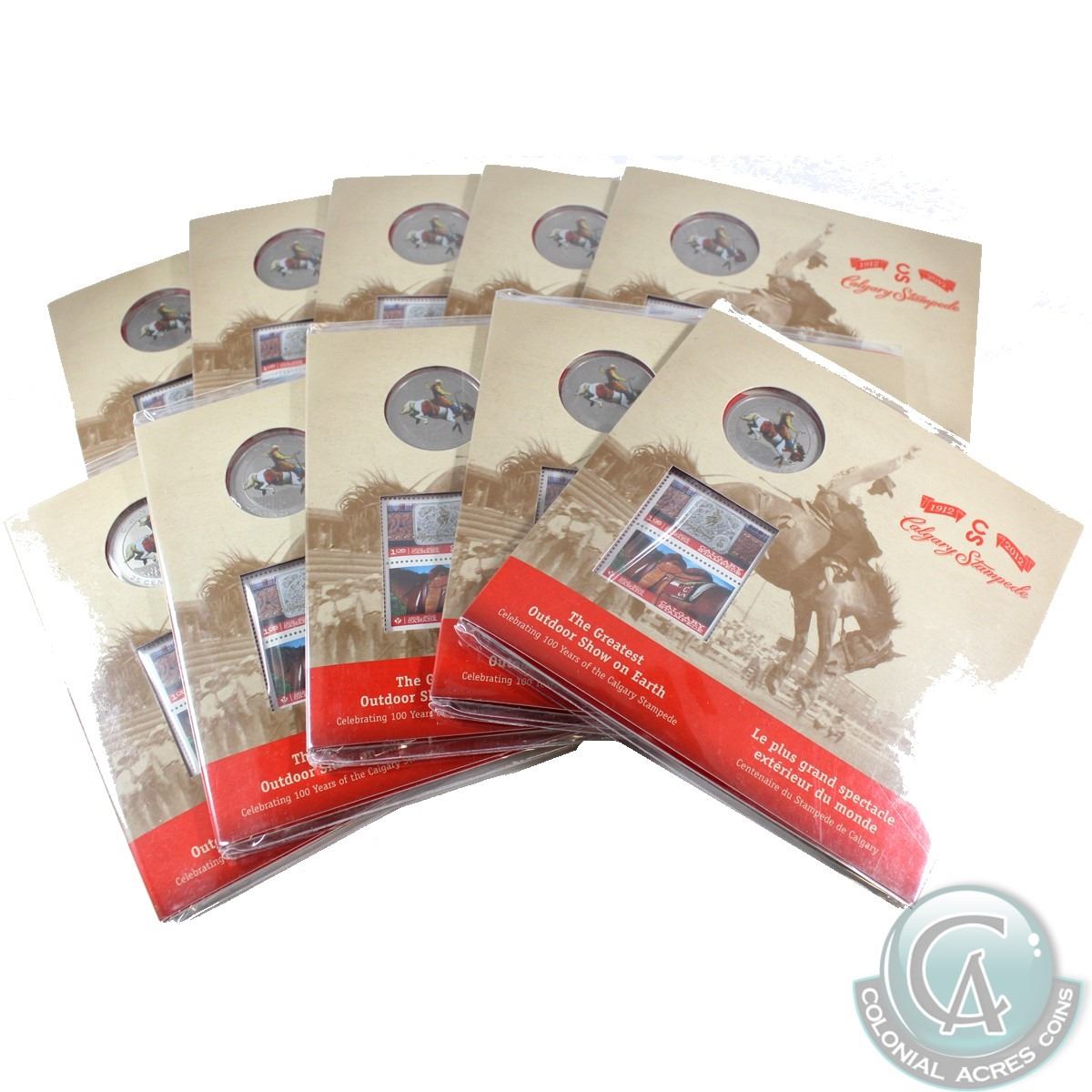 Estate Lot of 10x 2012 Canada 25-cent 100 Years of the Calgary Stampede Coin & Stamp Sets. 10pcs