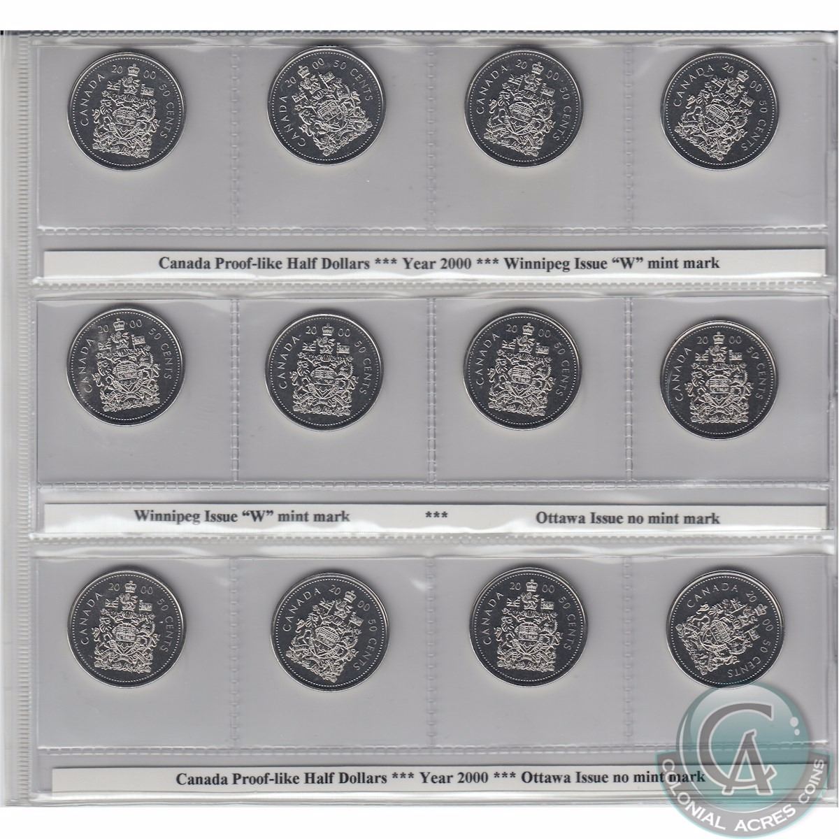 Estate Lot of 12x 2000 Canada 50-cents in Proof-like condition. You will receive 6x 2000-W (scarce) & 6x 2000 Regular 50-cents. 12pcs