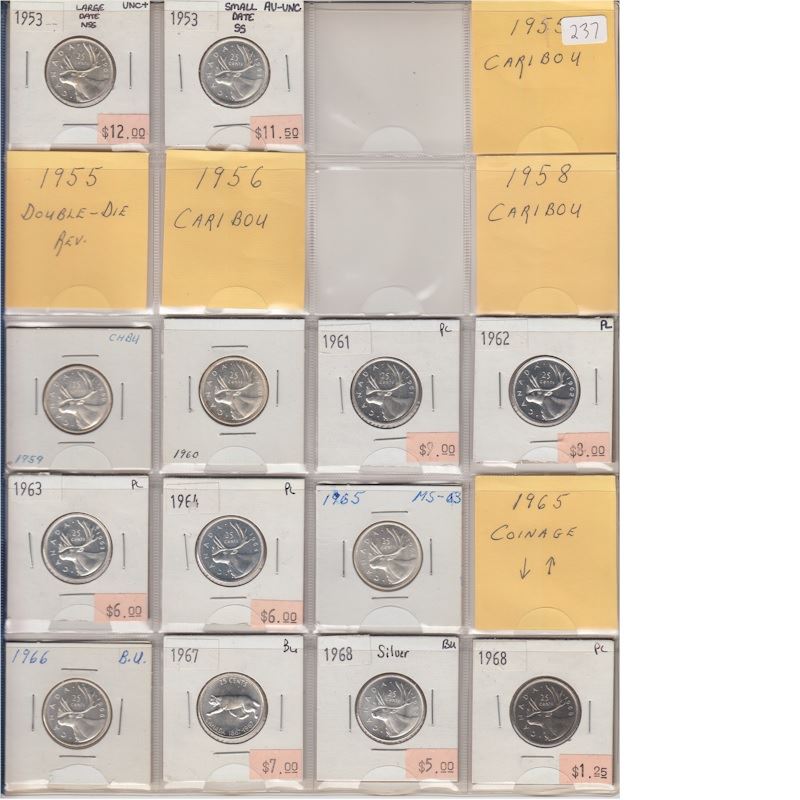 Estate Lot of 13x Canadian Mostly Silver Quarters From 1953-1968.