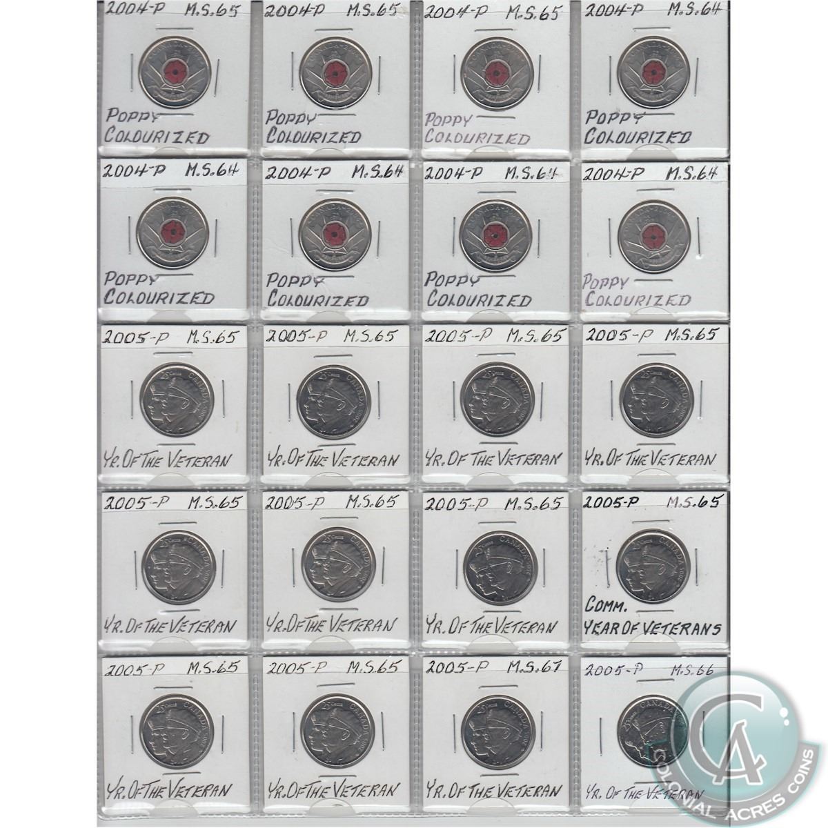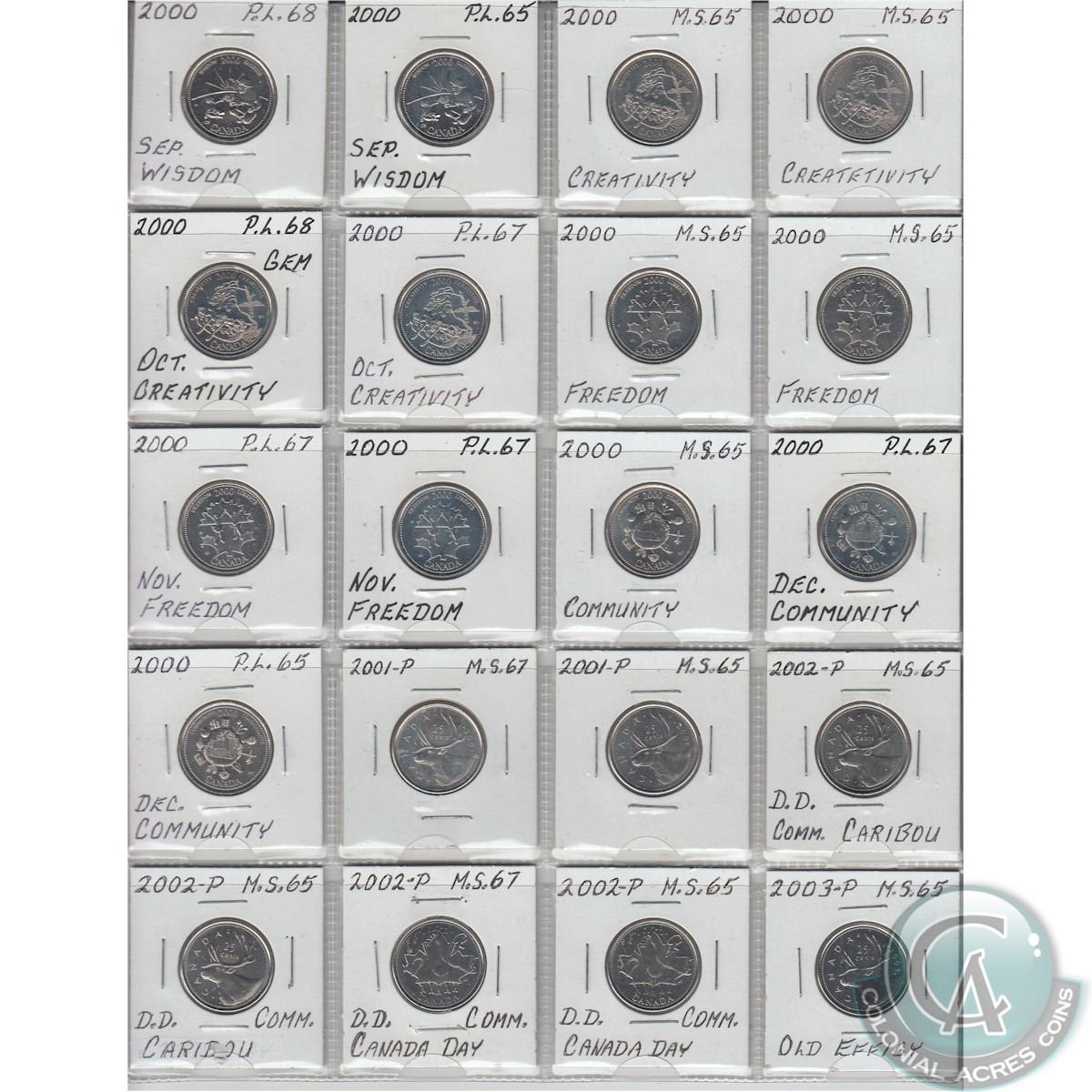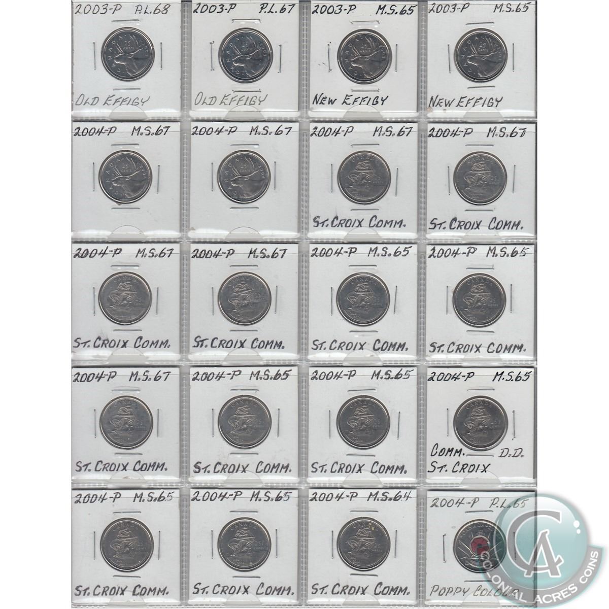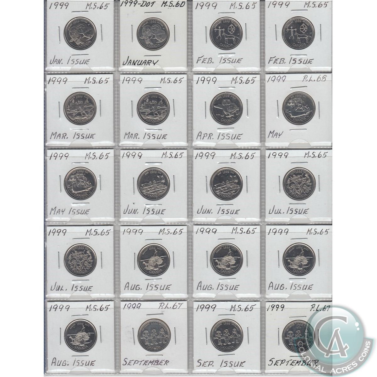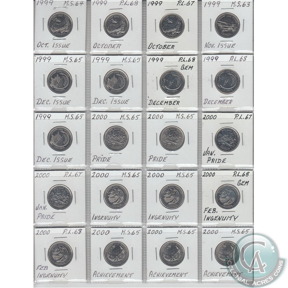 Estate Lot of 140x Canadian 25-cent Commemorative Coins. Dates range from 1999-2005. This lot includes all of the 1999 and 2000 commemorative quarters. Coins come in a binder. Please view images. (140)