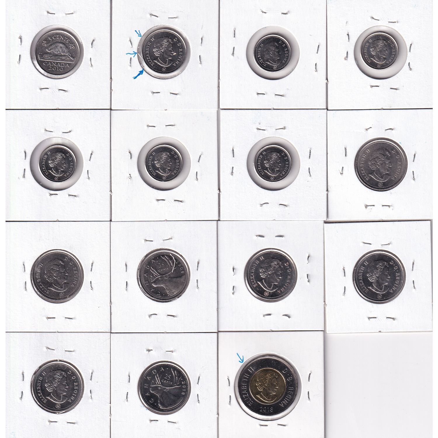 Estate Lot of 15x Canada Error Coinage in 2x2 Holders. You will receive 2x 5-cent, 5x 10-cent, 7x 25-cent & 1x $2.00. 15pcs