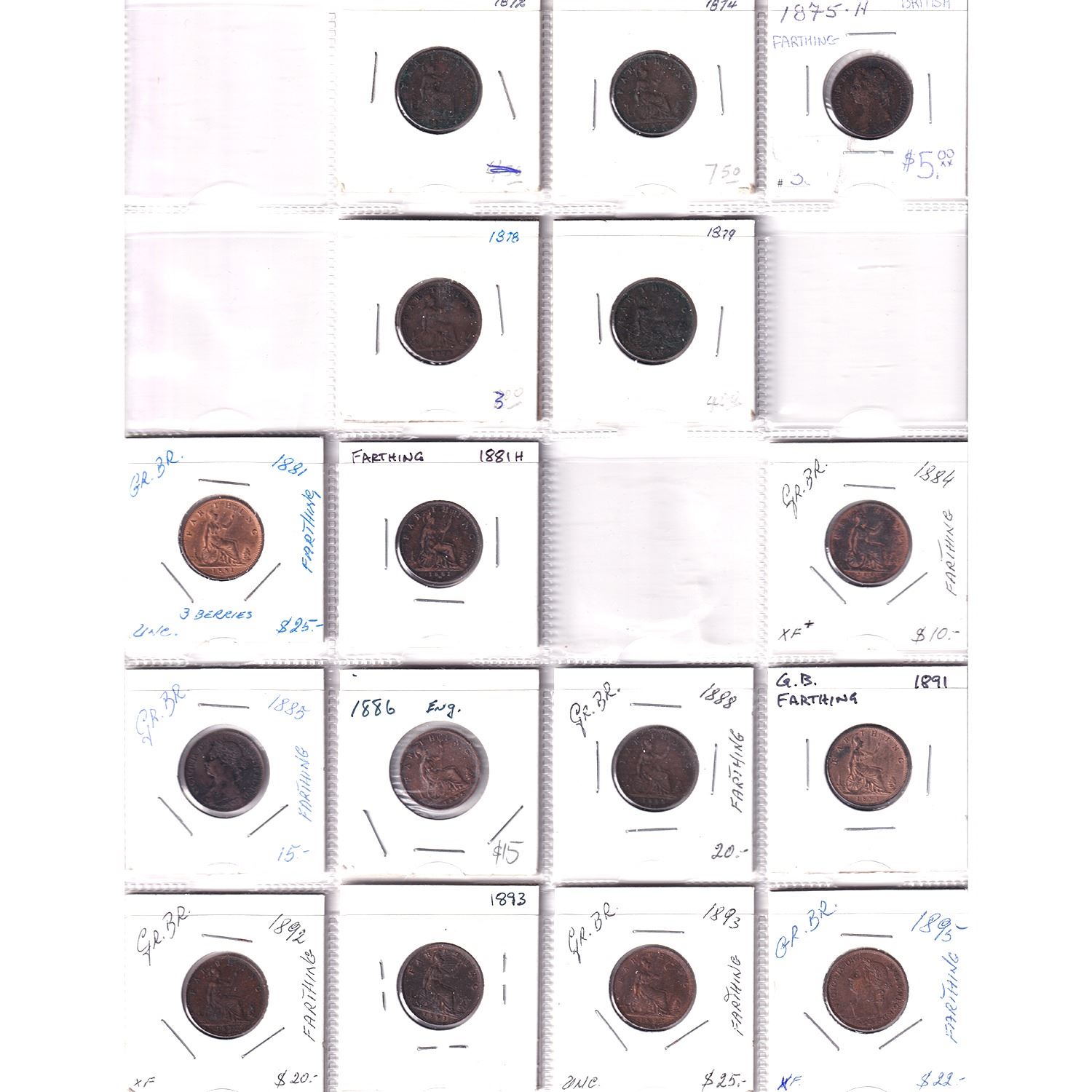 Estate Lot of 16x 1872-1895 Great Britain Farthings. You will receive 1872, 1874, 1875H, 1878, 1879, 1881, 1881H, 1884, 1885, 1886, 1888, 1891, 1892, 2x 1893 & 1895. 16pcs