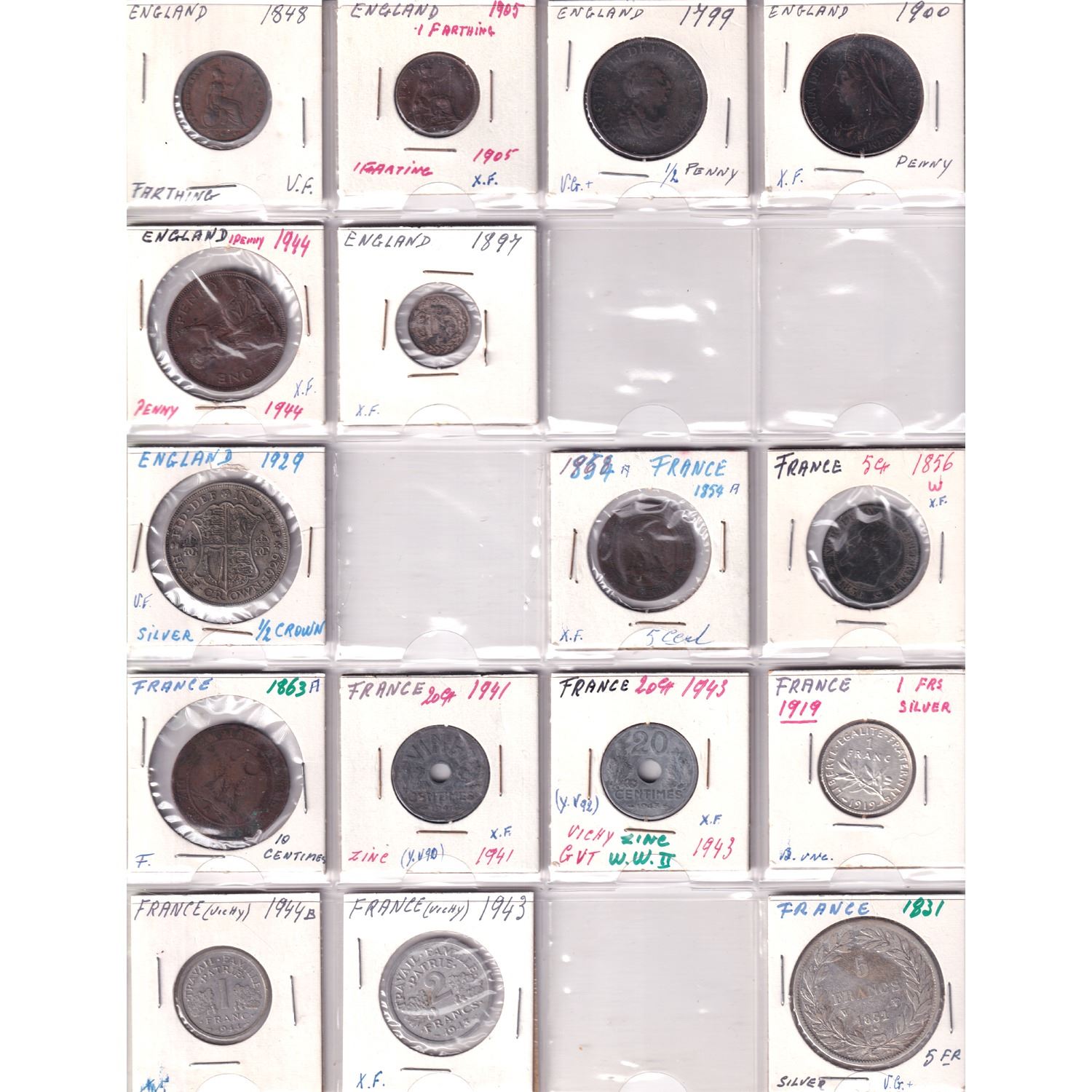 Estate Lot of 17x 1799-1944 Great Britain & France Coinage, with Some Silver Coins. 17pcs