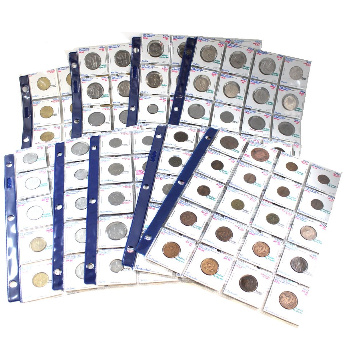 Estate Lot of 1893-1993 Italian Republic Coinage of Various Denominations in Plastic Pages. 176pcs
