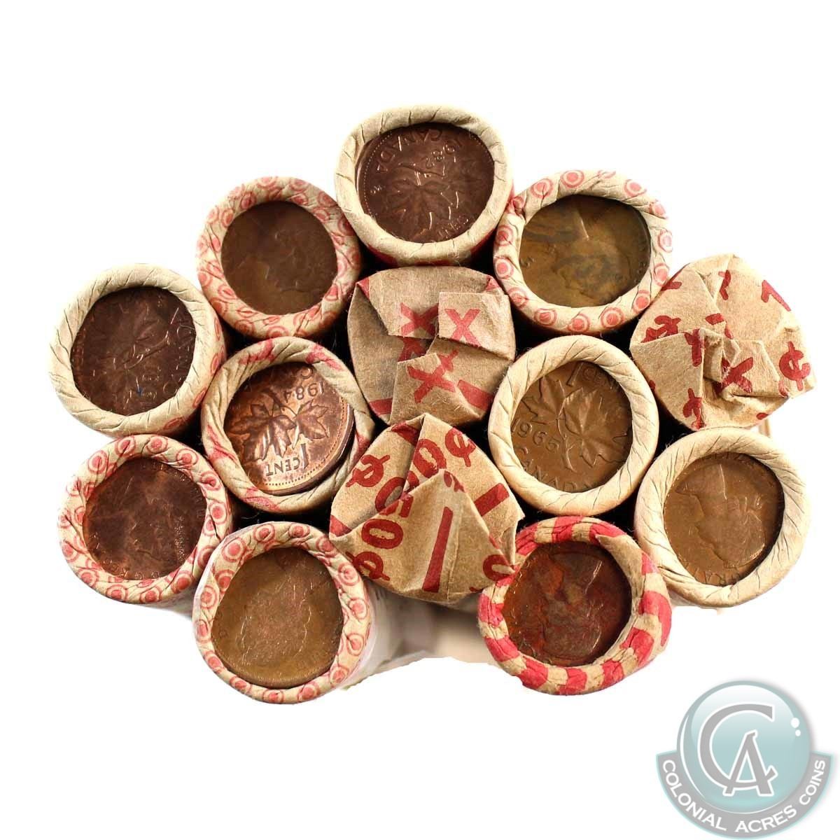 Estate Lot of 1960-1985 Canada 1-cent Circulated Rolls. 13pcs