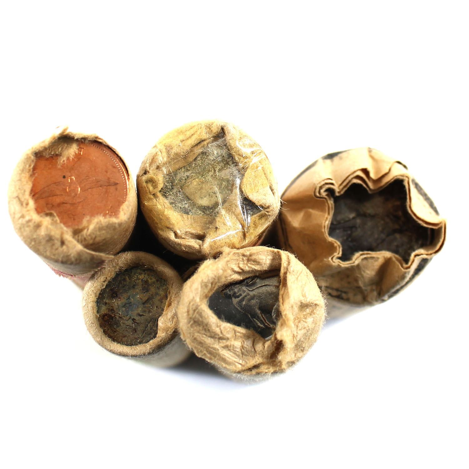 Estate Lot of 1967 Canada 1-cent, 5-cent, 10-cent, 25-cent & 50-cent Original Rolls. Some rolls are torn. 5pcs