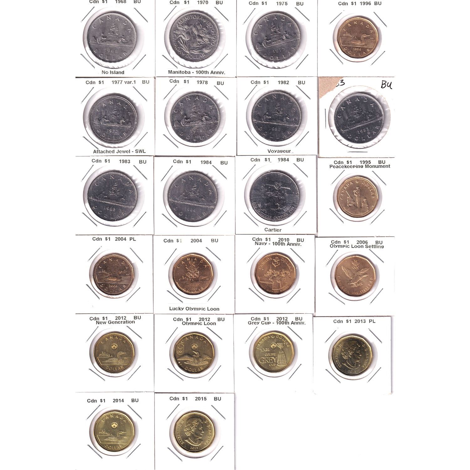 Estate Lot of 1968-2015 Canada Nickel Dollars and Loon Dollars. You will receive a variety of dates from 1968 to 2015 with only 1983 having a duplicate. 22pcs