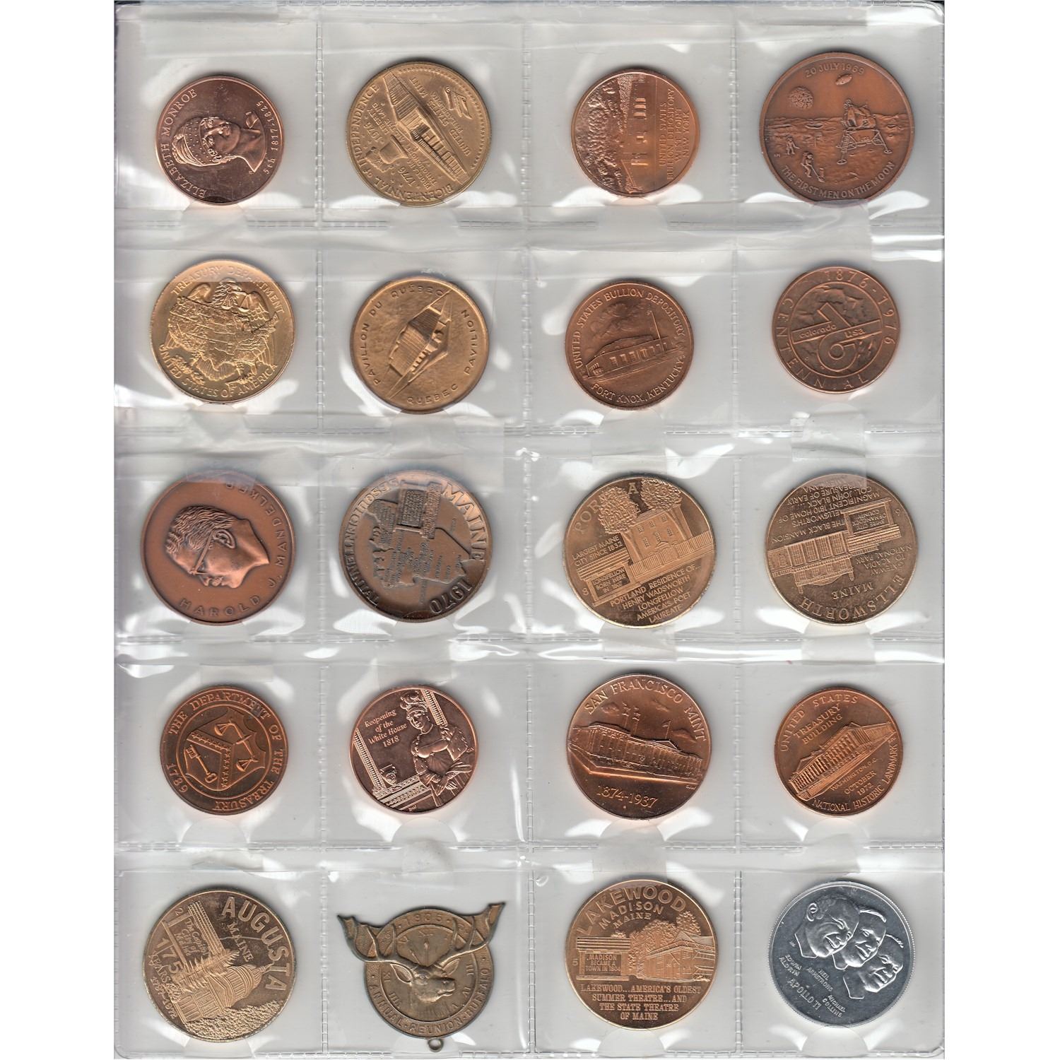 Estate Lot of 20x Miscellaneous, Mostly USA Copper and Brass Commemorative Medallions from Different States. 20pcs