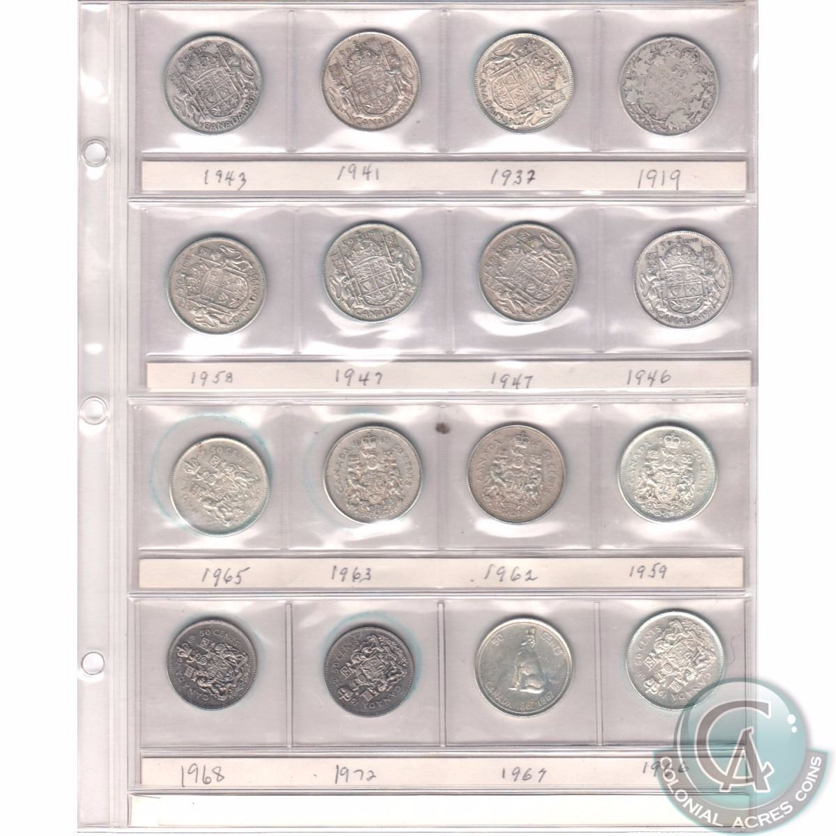 Estate Lot of 21x Canada Silver & Nickel 50-cent Dated 1919-1972 in Plastic Pages. 21pcs