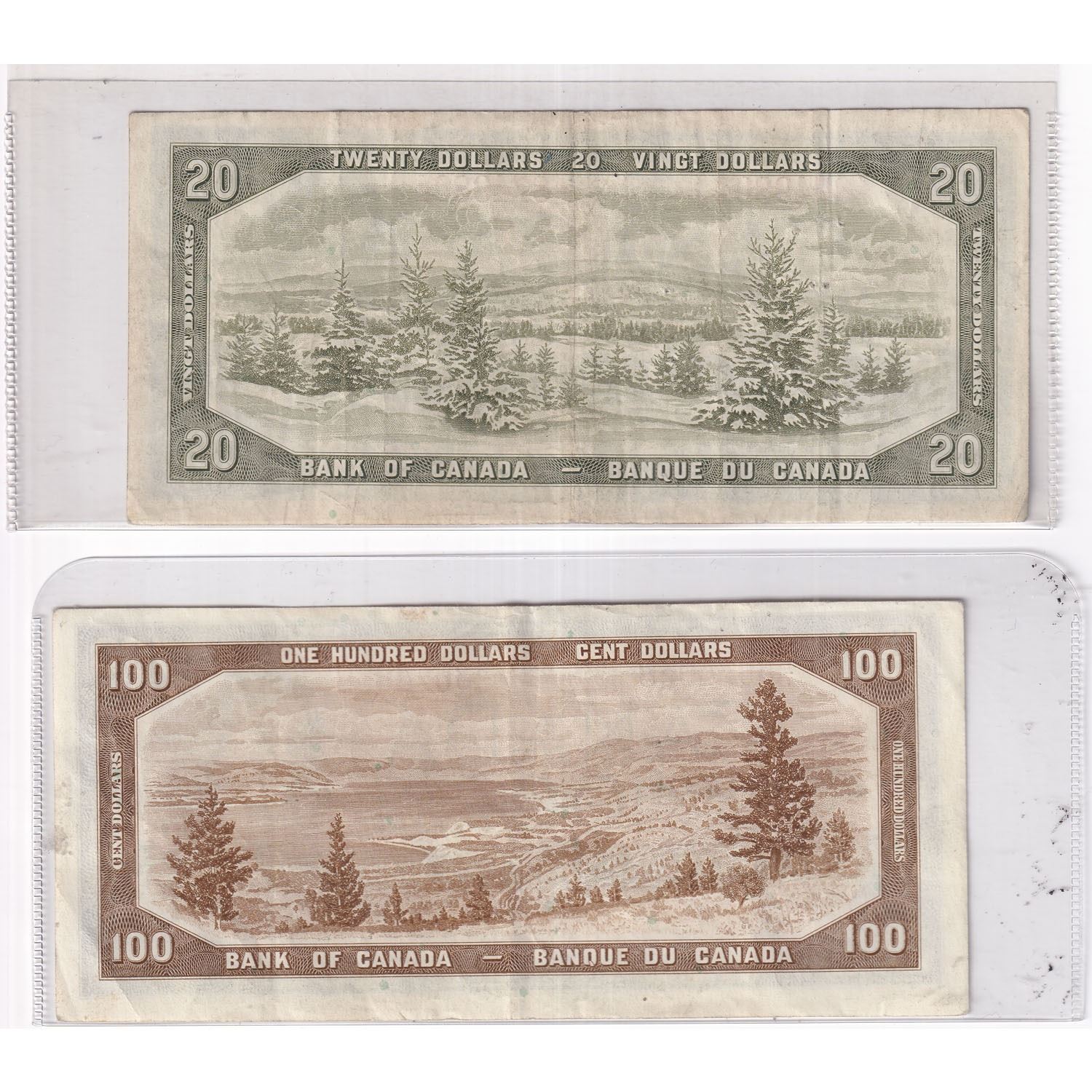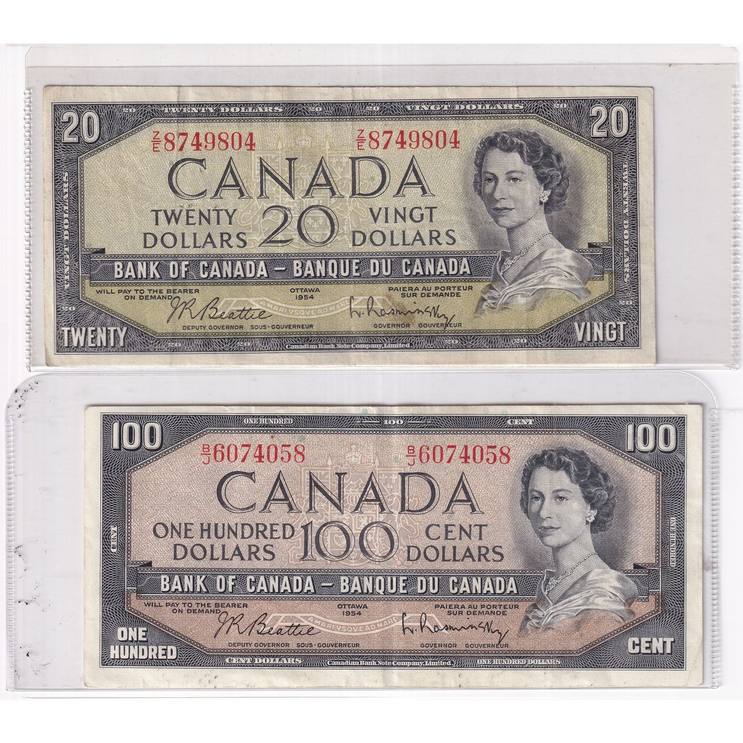 Estate Lot of 2x 1954 Modified Banknotes. Lot includes a $20 S/N: Z/E8749804 Fine, and a $100 B/J6074058 VF.