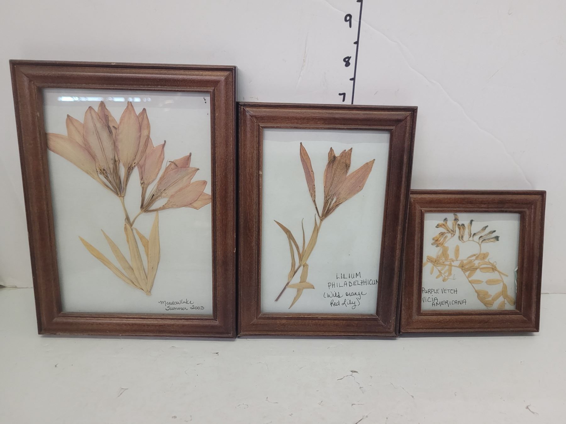 Estate Lot of 3 Pretty Pressed Flowers (framed)