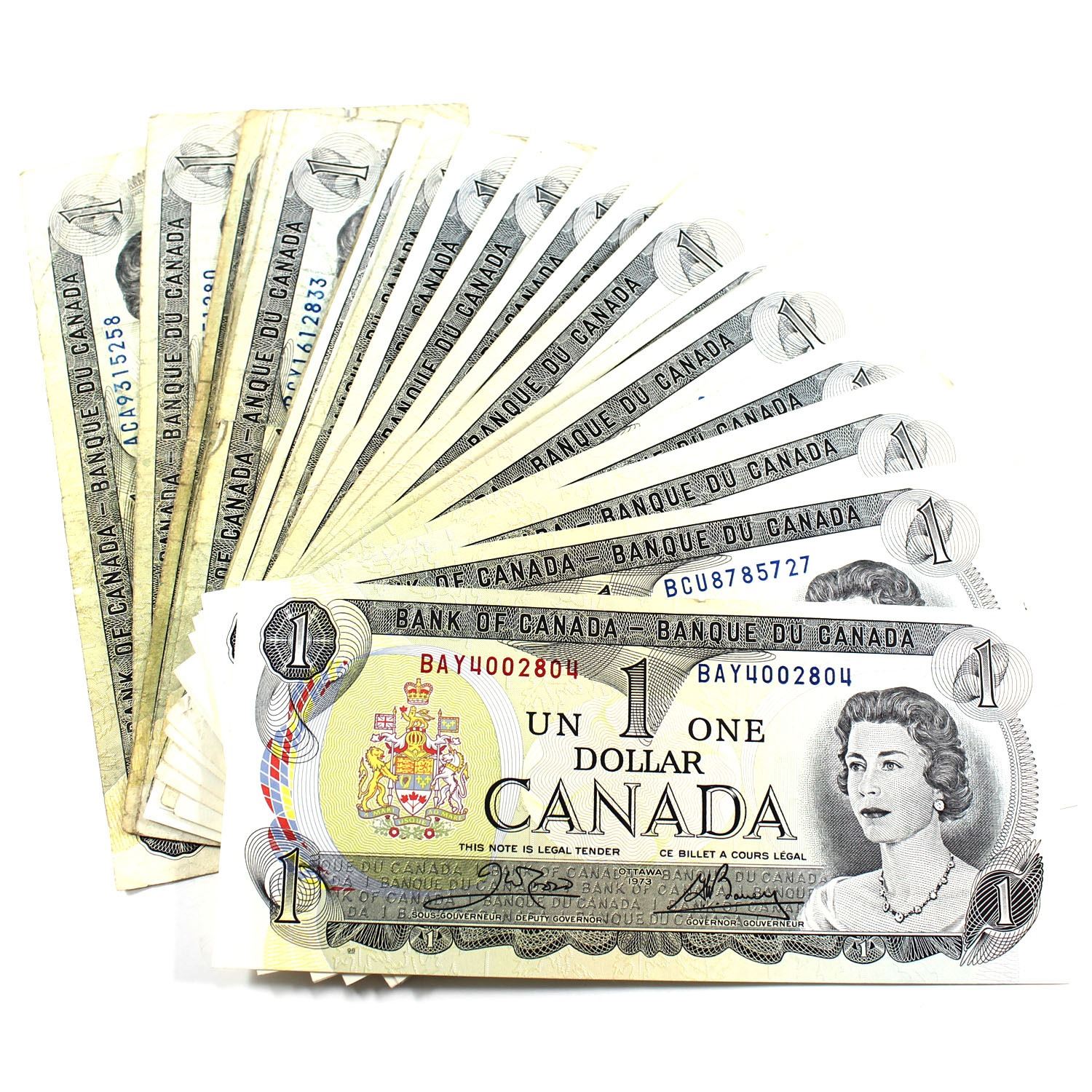 Estate Lot of 32x $1 Bank of Canada Notes - 30x Crow-Bouey & 2x Lawson-Bouey Signatures. Many different prefixes included. 32pcs