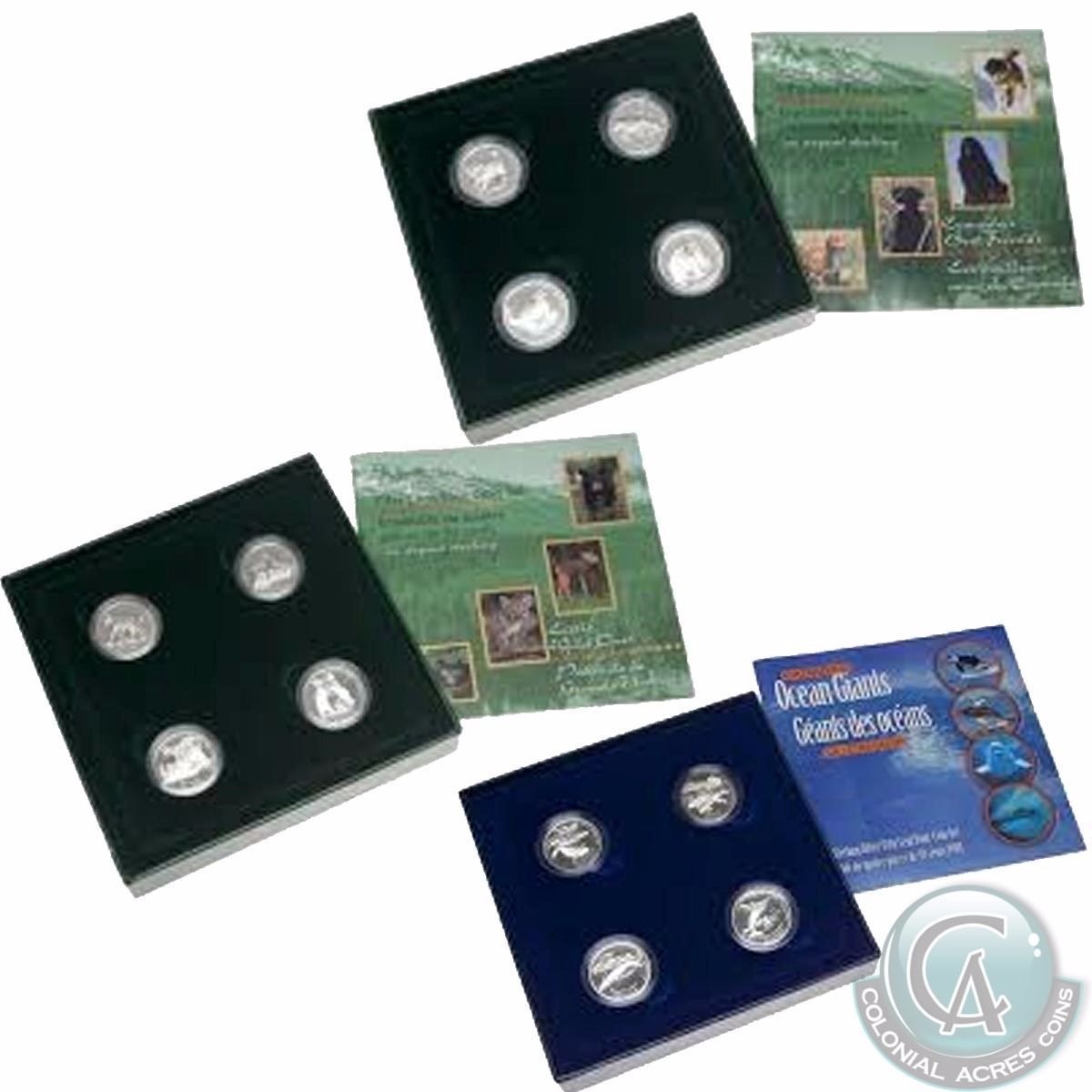 Estate Lot of 3x Canadian Commemorative Proof 4-coin Sterling Silver 50-cent Coin Sets. The sets you will receive are: Canada's Best Friends, Little Wild Ones Animals and Ocean Giants. Outer sleeves are worn, however, sets come with all original packaging issued by the mint. (3pcs)