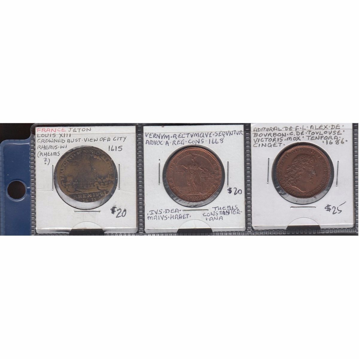 Estate Lot of 3x France tokens dated 1615,1668 and 1686.
