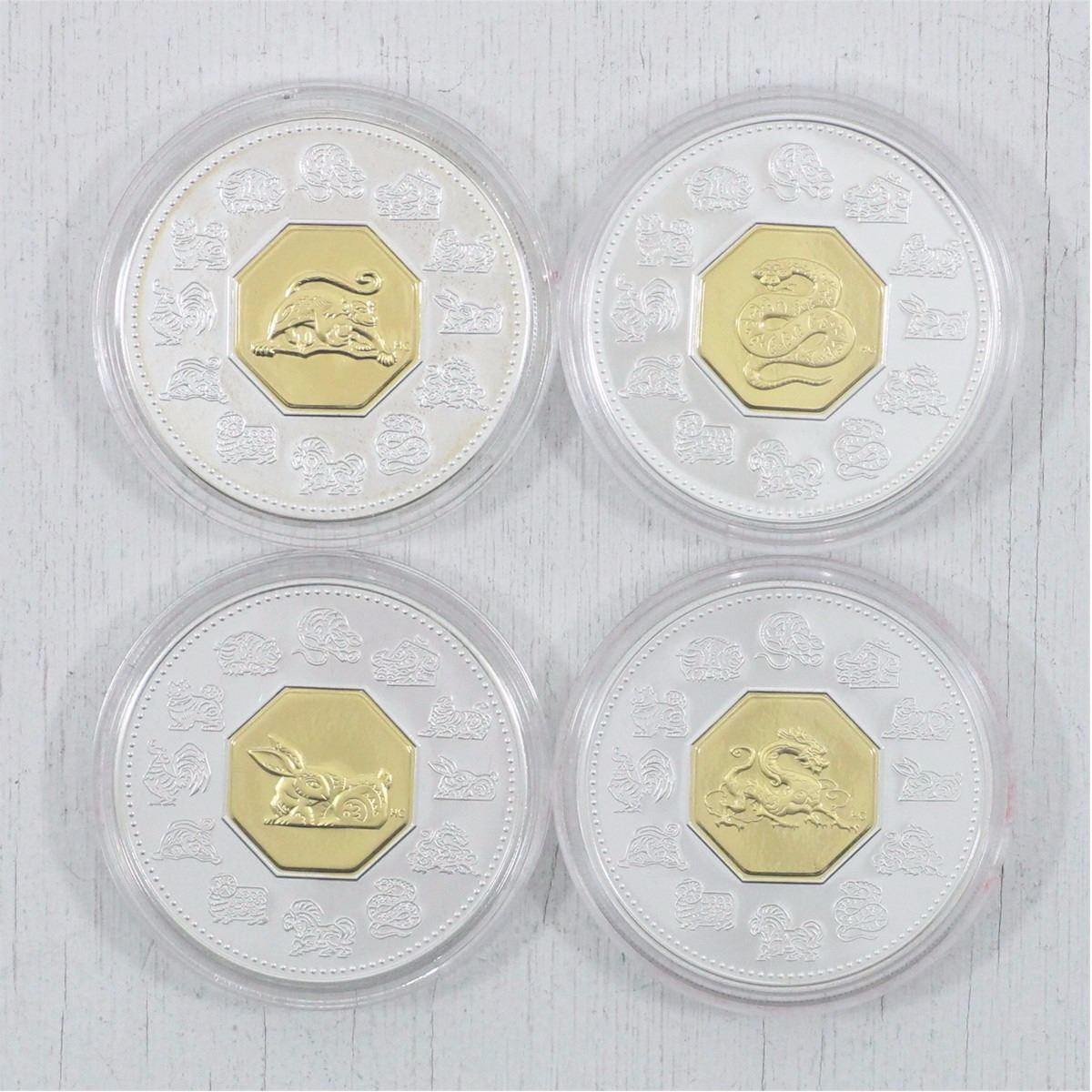 Estate Lot of 4x Canadian $15 Lunar Series Gold plated and Silver coins. You will receive the 1999 Rabbit, 2000 Dragon, 2001 Snake and the 2004 Monkey. (4pcs) Buyers Premium will be added on all items as per our terms of sale. We accept Paypal, Credit Card, E-Transfer Payments, Cheque or Money Orders (there is an additional 3% fee for using Paypal or Credit Card). All invoices will be emailed immediately following the auction, please contact us if you would like to pay by credit card or receive a new revised lower total for mailing in payment or sending an e-transfer (3% discount). All Items Are Sold "AS IS", no returns